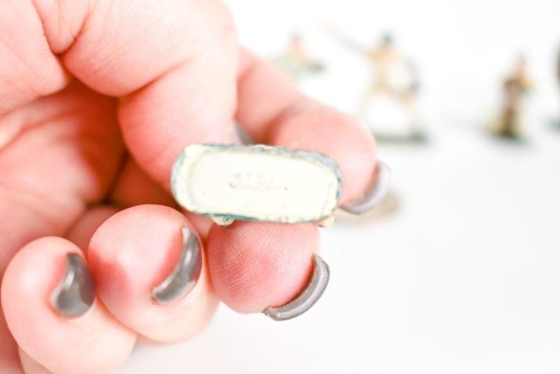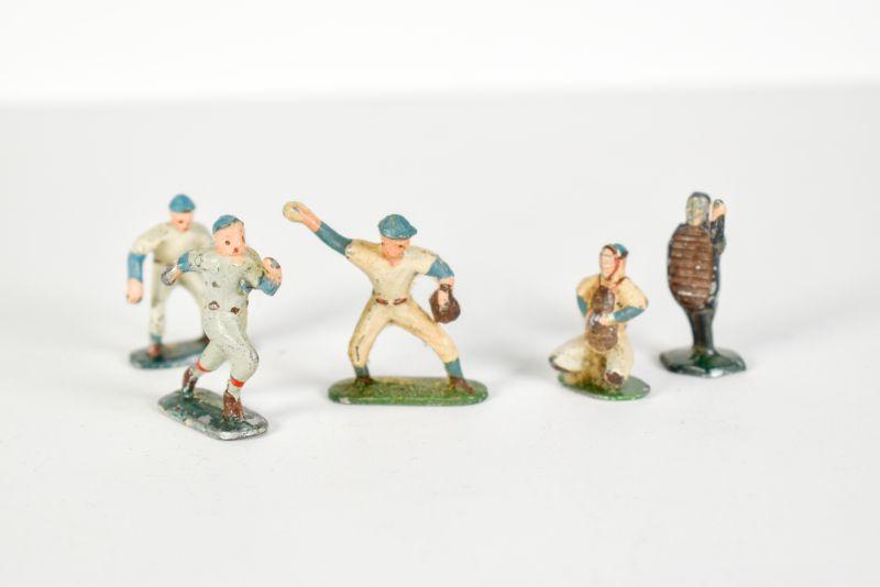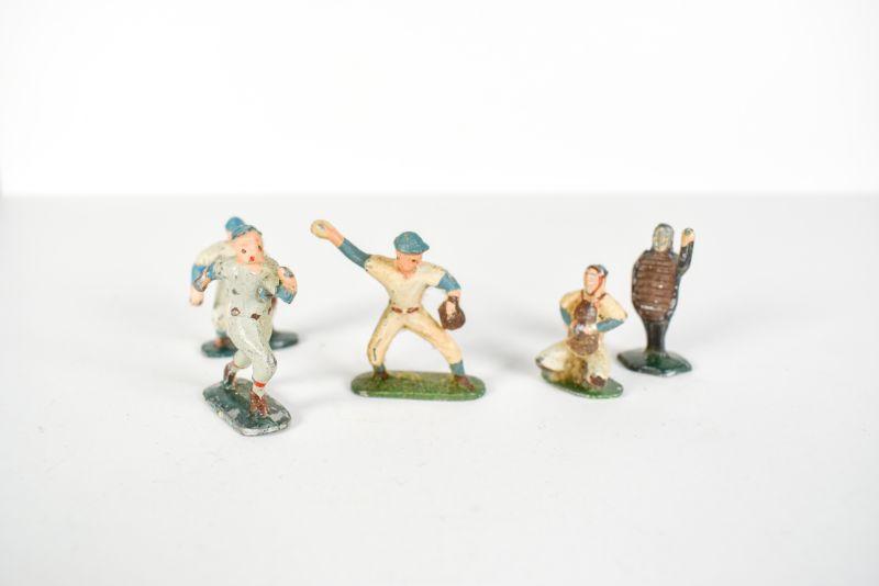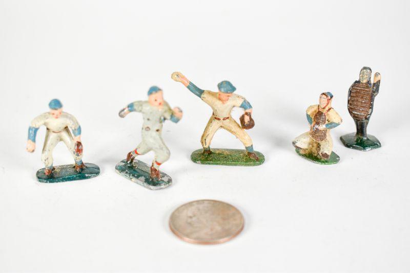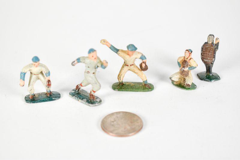 5 tiny baseball figures. Quarter for scale. Excellent condition. **Please read Terms and Conditions before placing a bid. Pick up is Sunday, December 22 from 11am to 3pm or Monday, December 23 from 4pm-7pm in Mantua, NJ. All sales are final. All sales are as is, where is. Please review all photos. Props are not included. Measurements are approximate.
