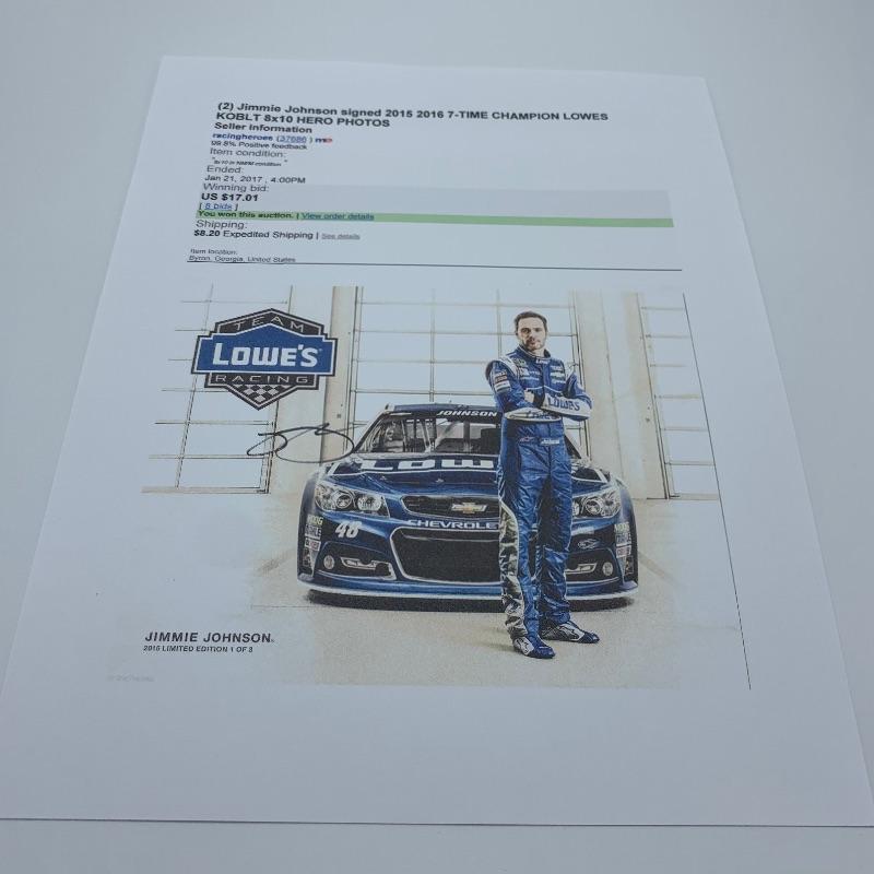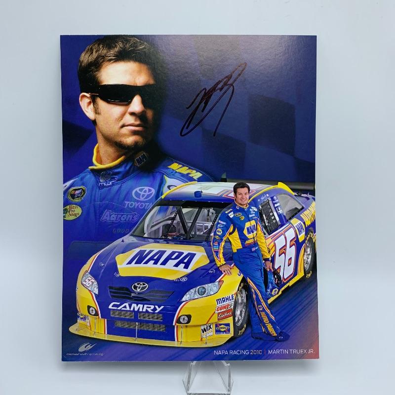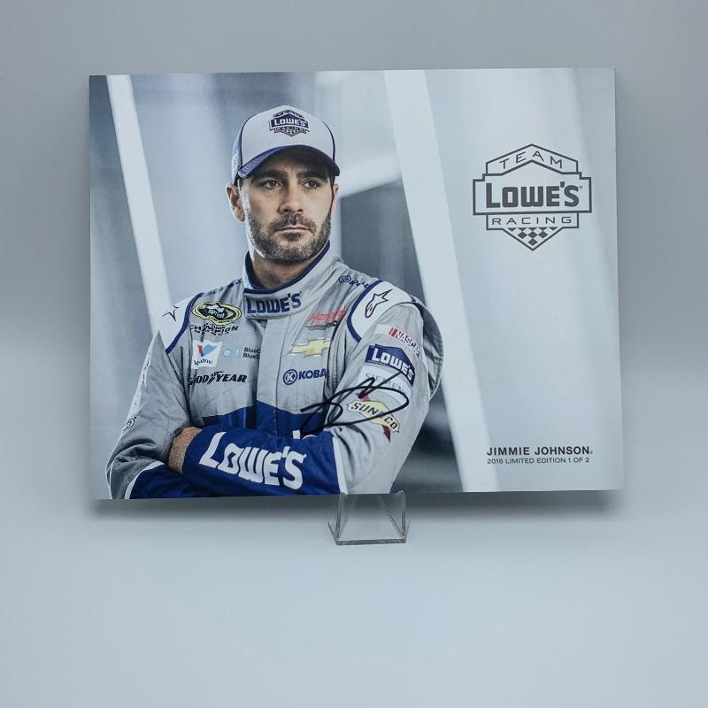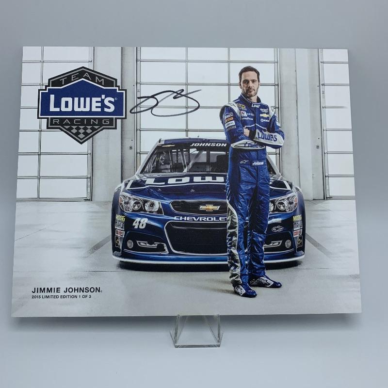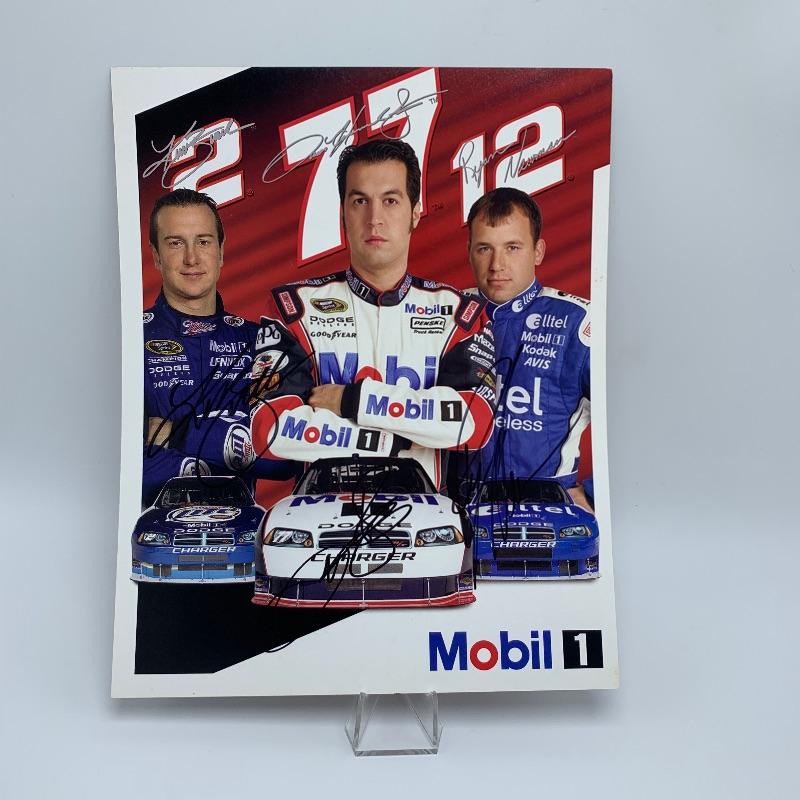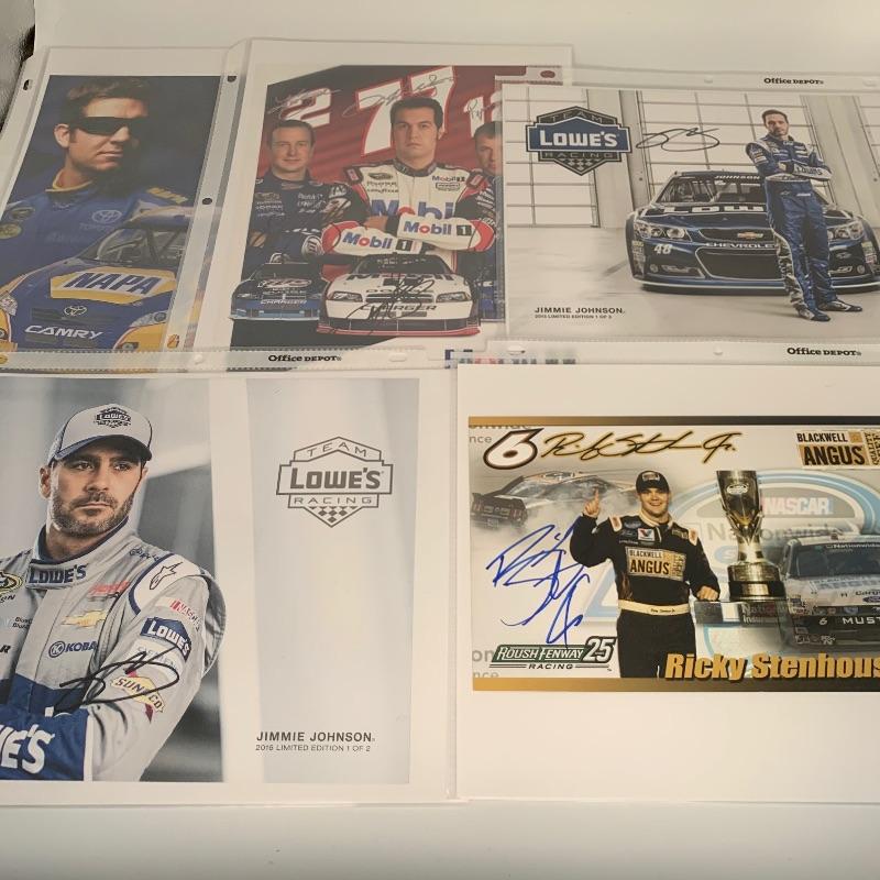 Autographs of top Nascar drivers include autographed photos of Jimmy Johnson (2 photos), Ricky Stenhouse Jr (with COA), Martin Truex Jr (with COA), and a photo signed by all three Busch, Hornish and Newman (with COA)