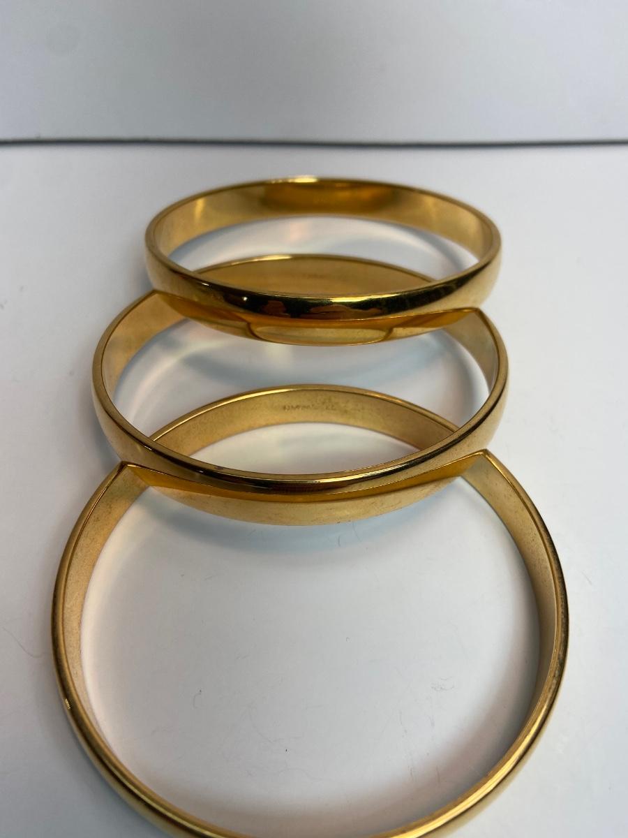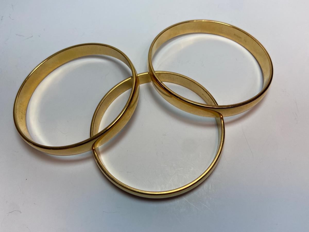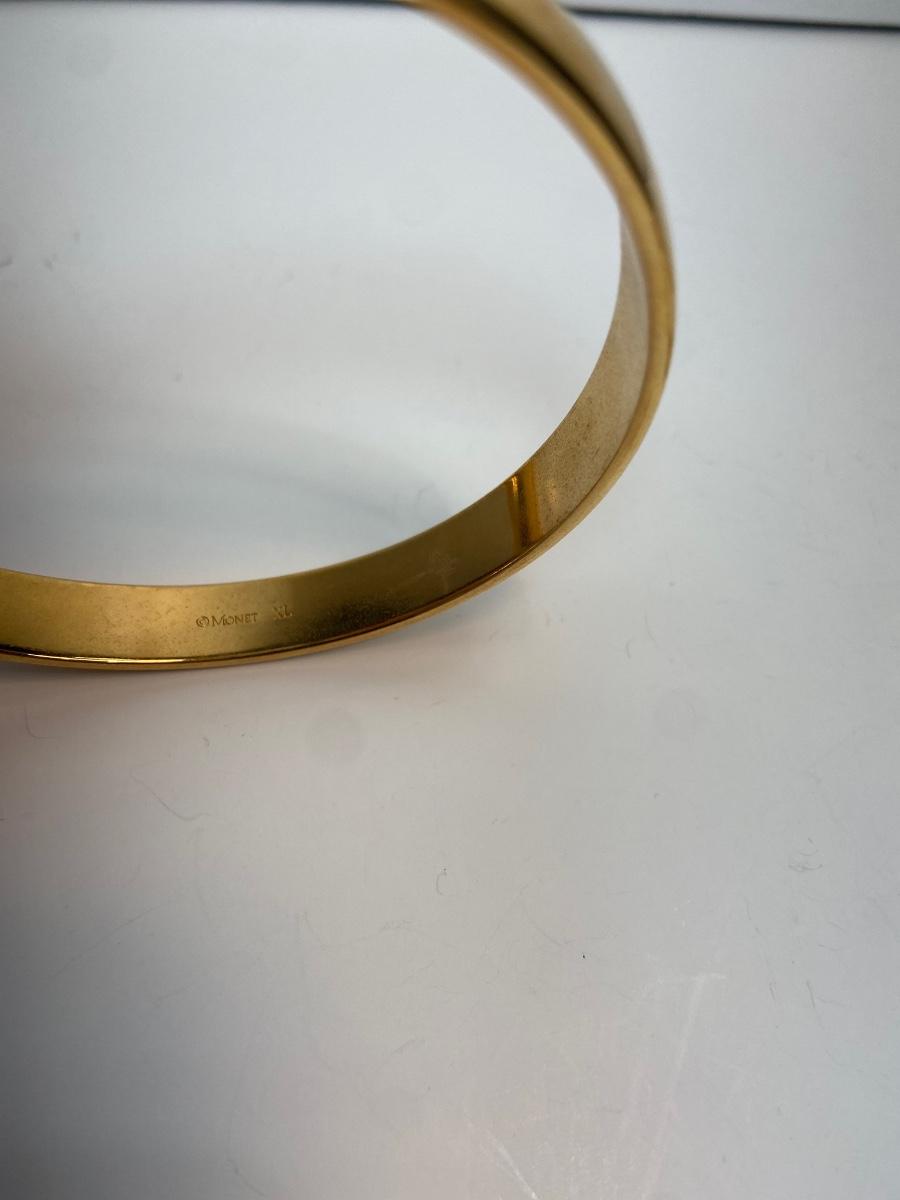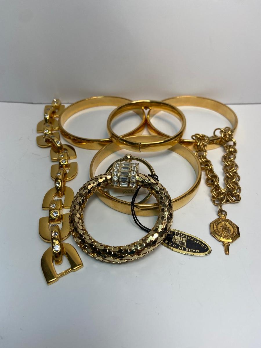Lovely collection of gold tone Monet. Whiting & Davis bangles bracelets and keychain.