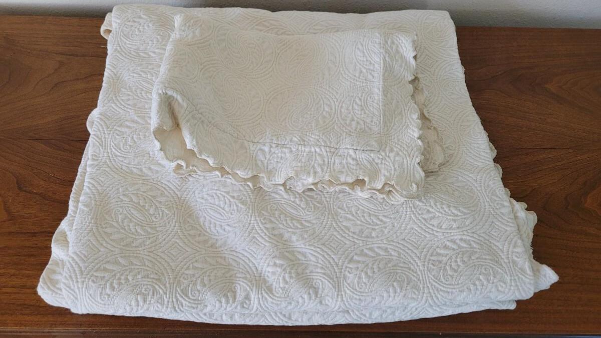 Lot 43: Twin Peacock Alley Coverlet Bedspread and (1) Sham
