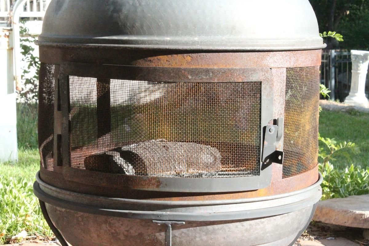 This outdoor Fire Pit has a protected front loading door and still has many years of service left. About 38" x 22".