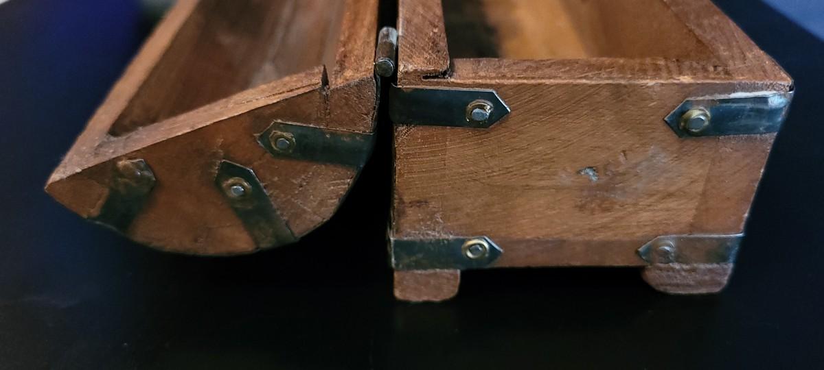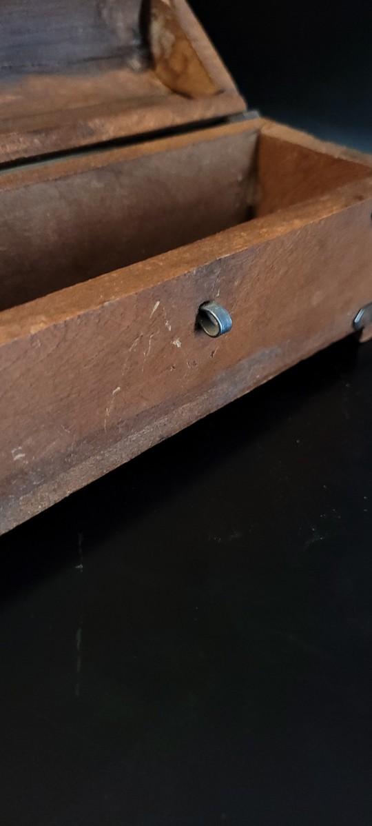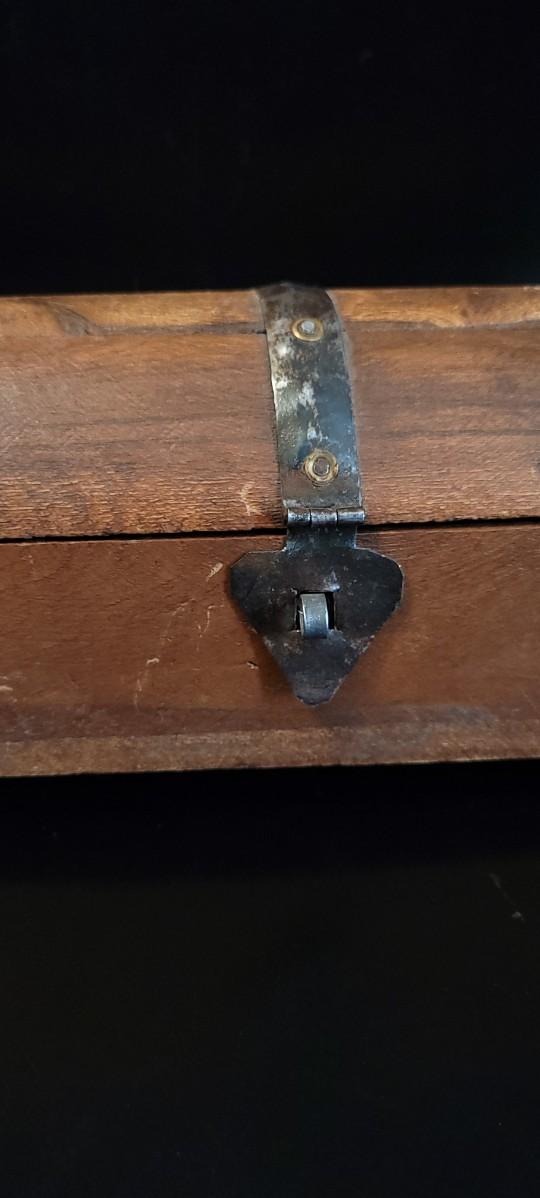 Outstanding little handmade Folk Art Trinket Box with nice amount of metal accent detailing.