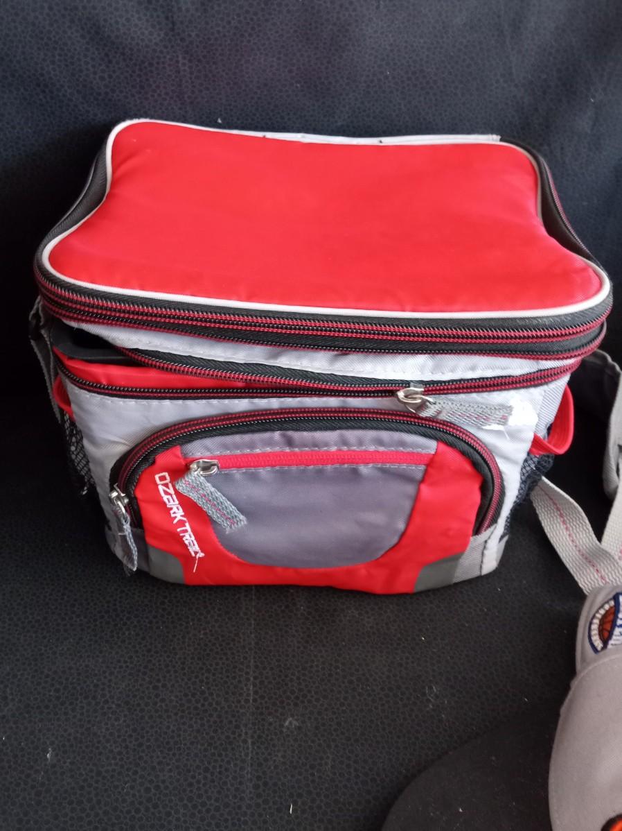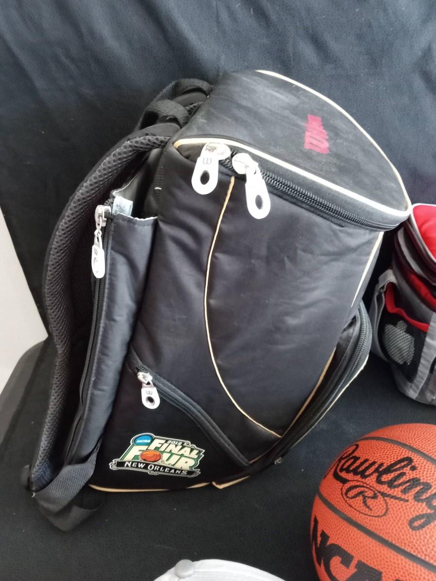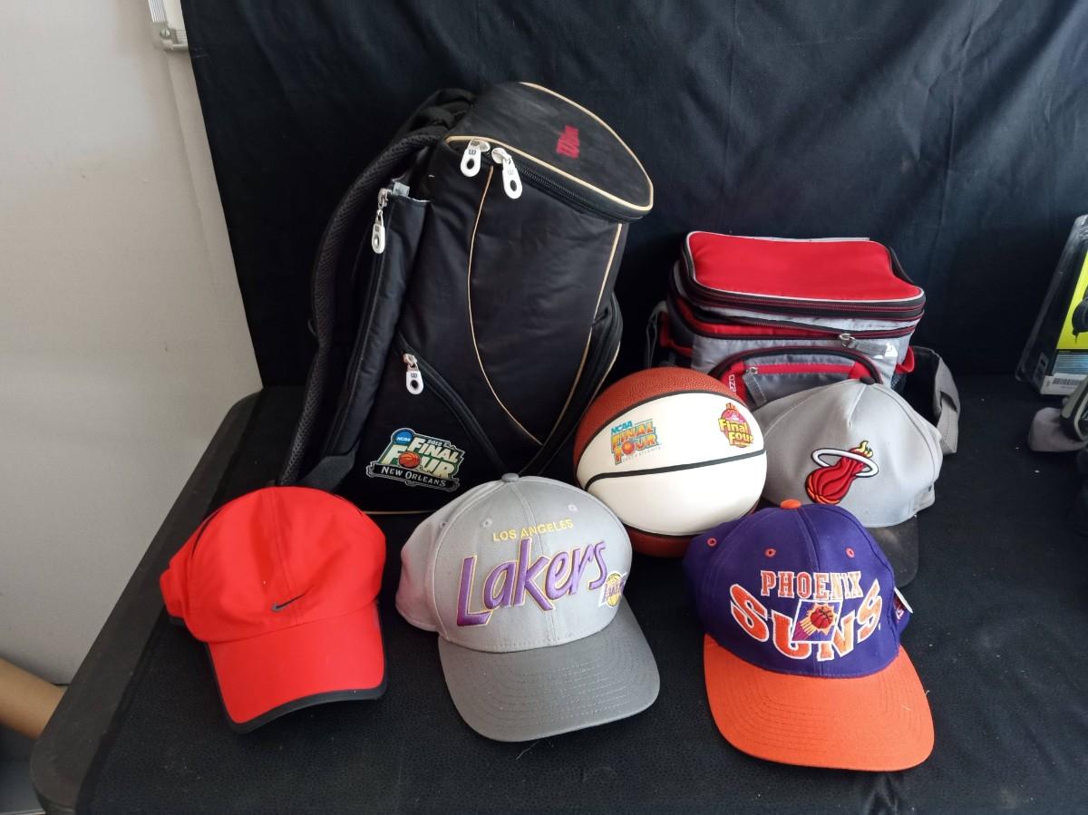 BACKPACK, CAPS, COOLER AND A SMALLER BASKETBALL