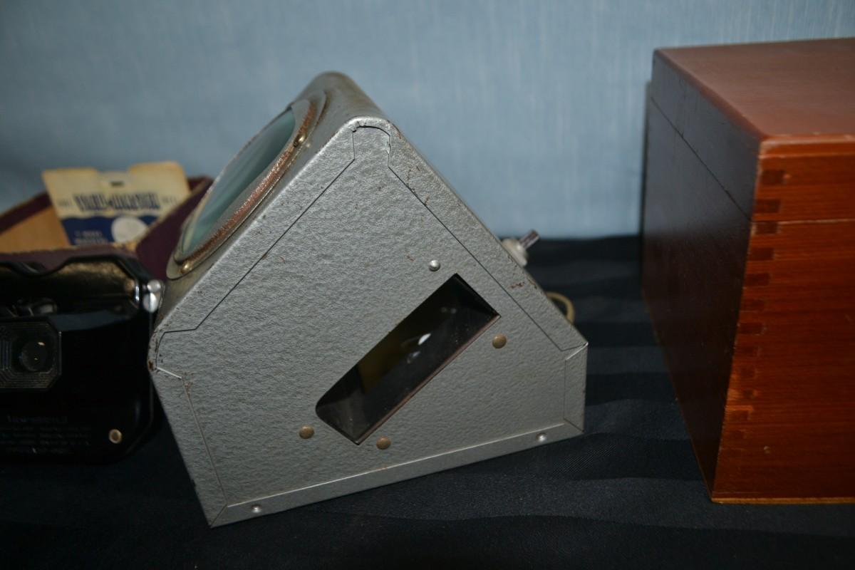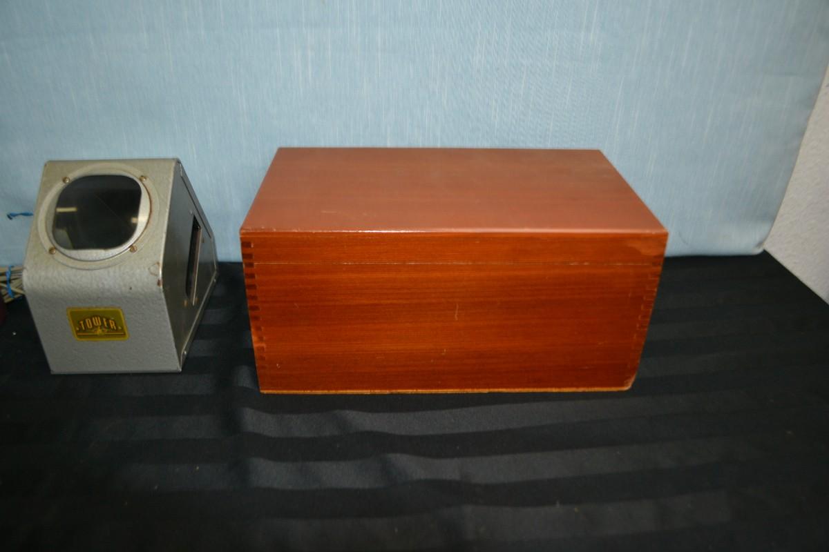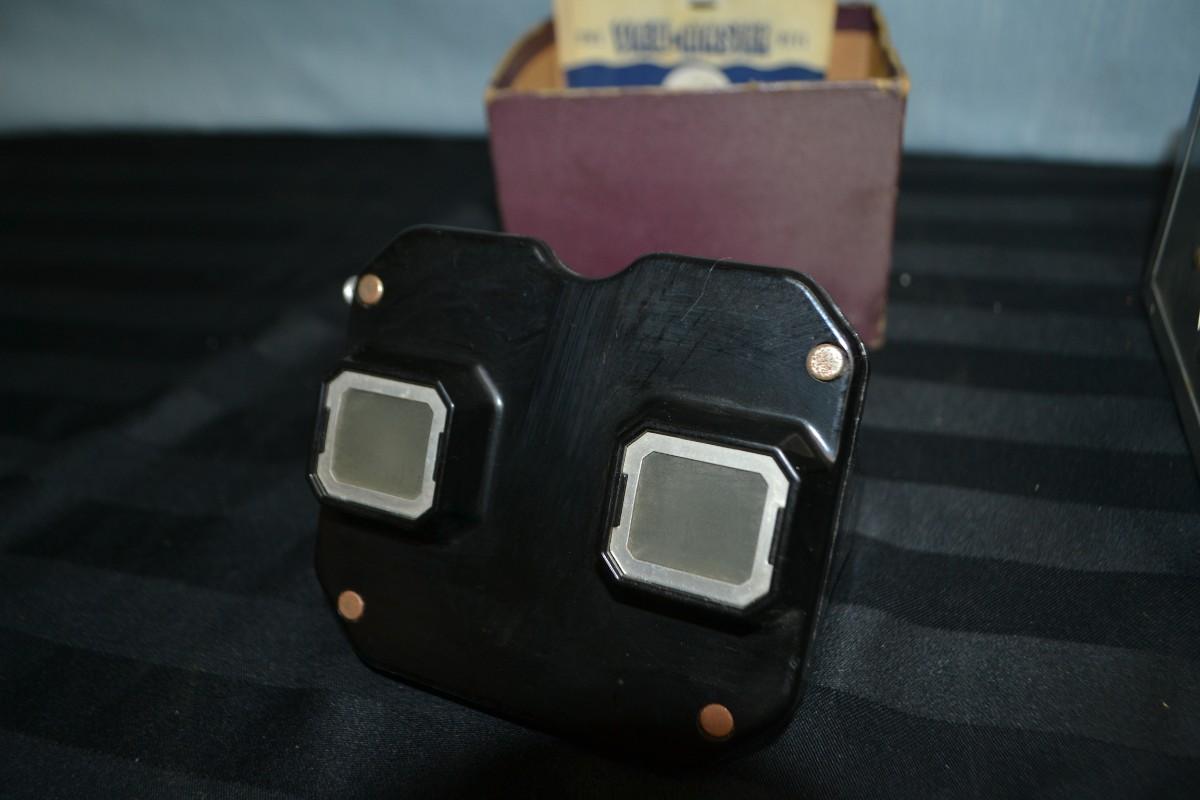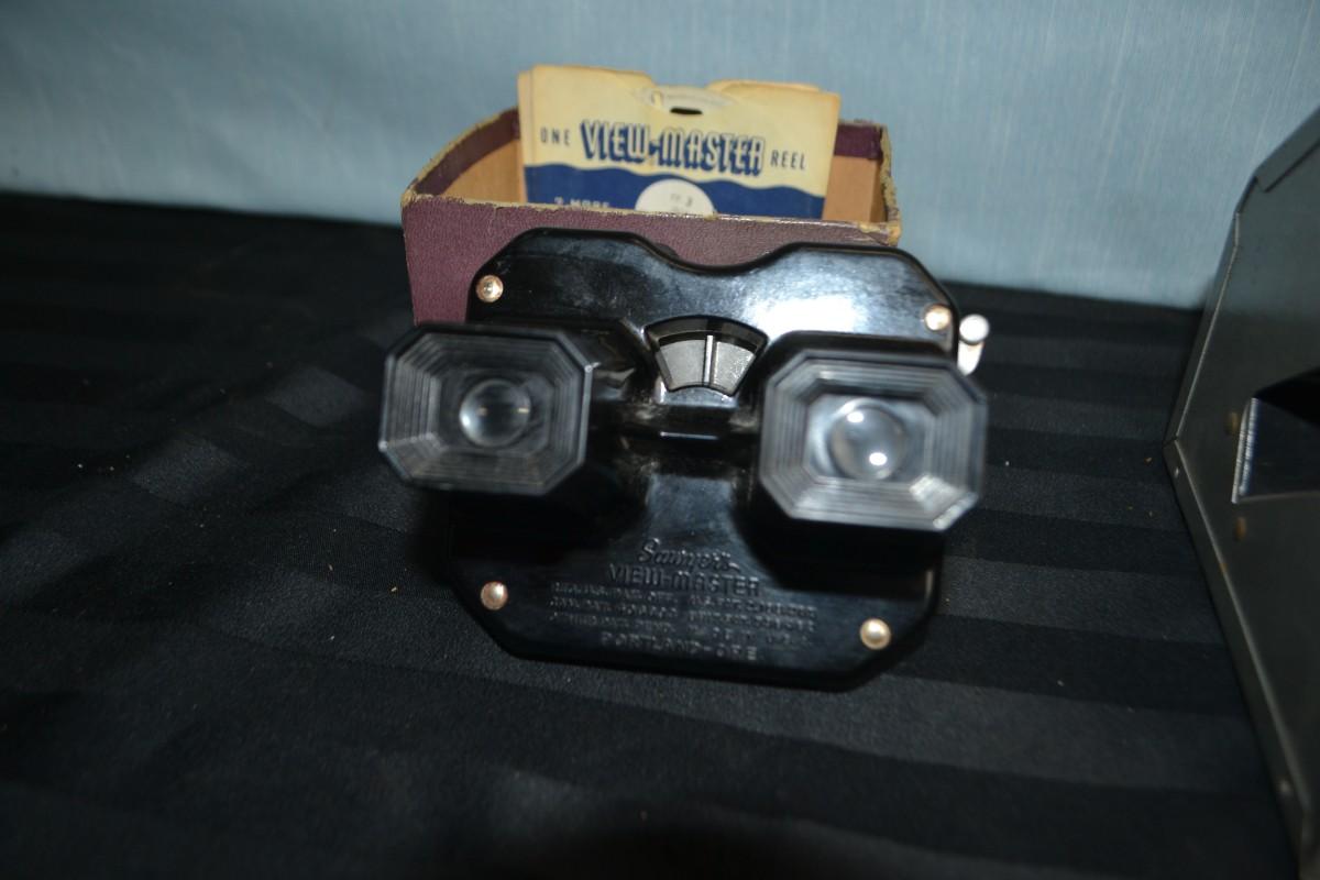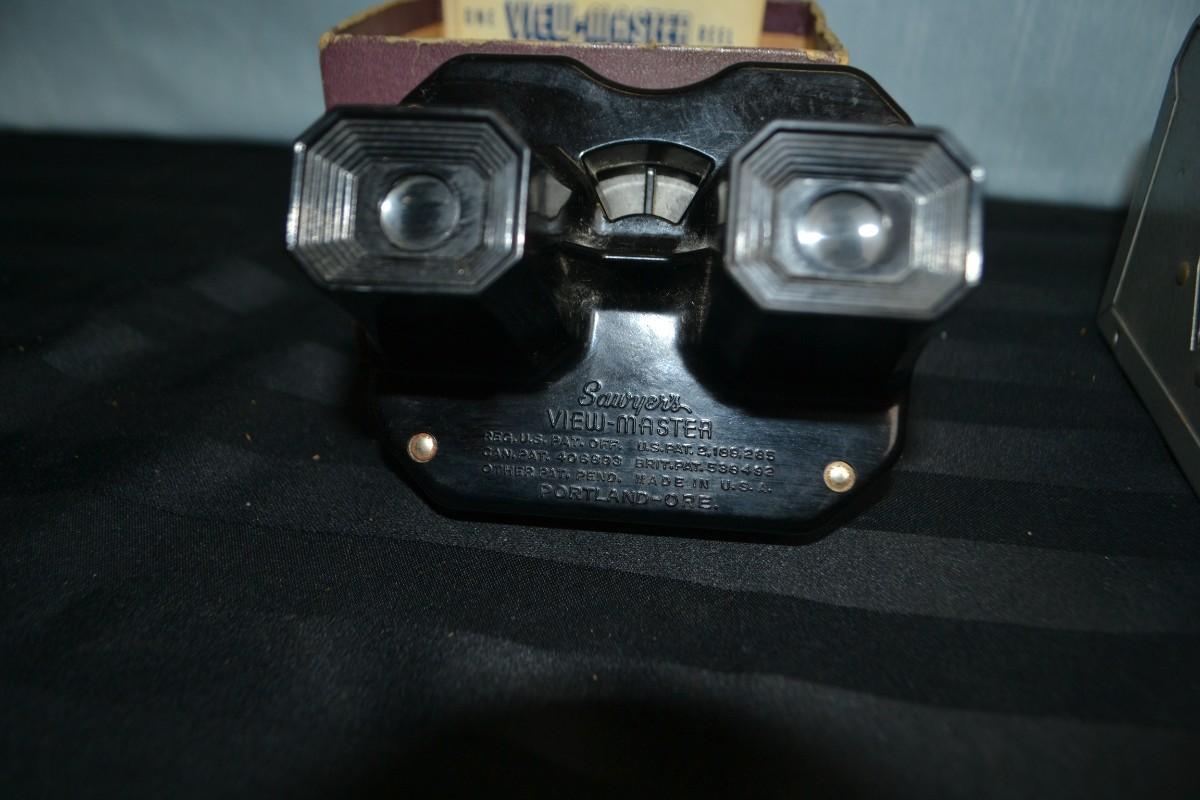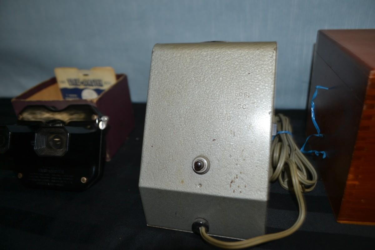VINTAGE VIEW MASTER, SLIDE VIEWER AND WOOD BOX