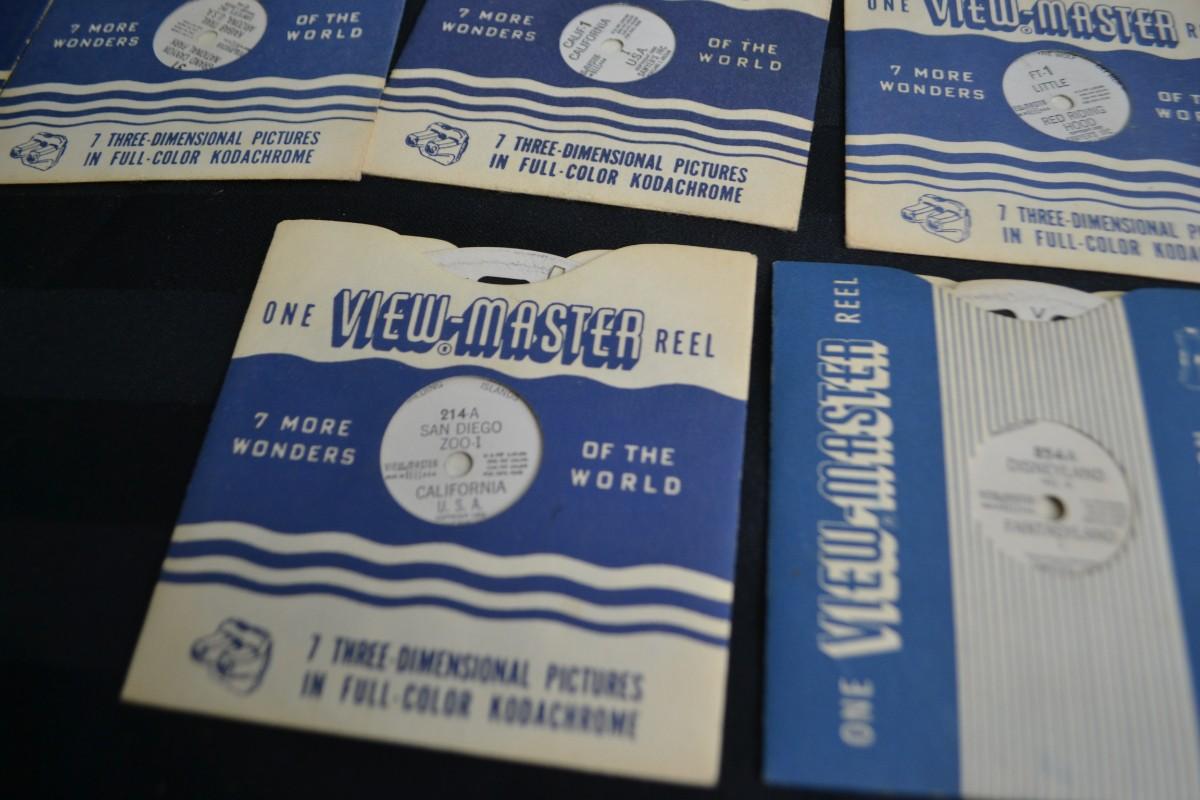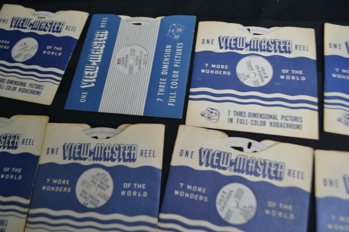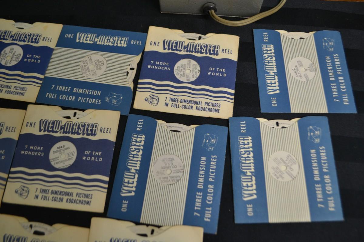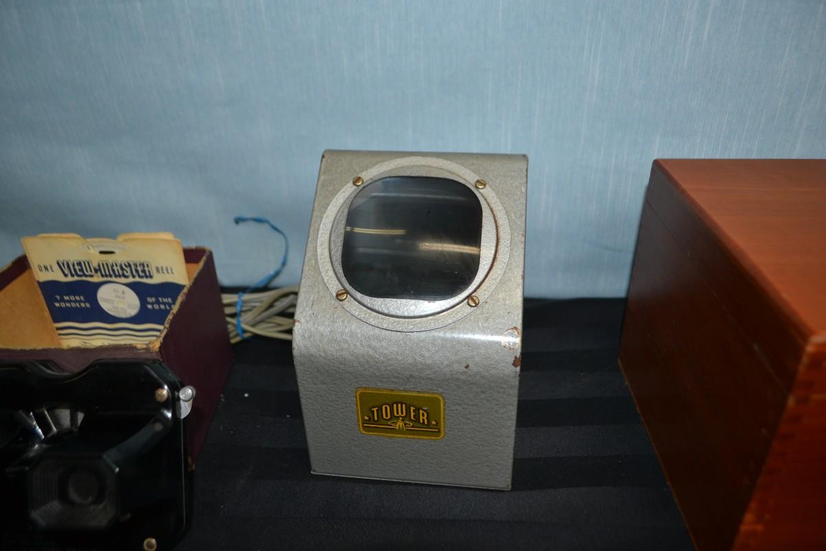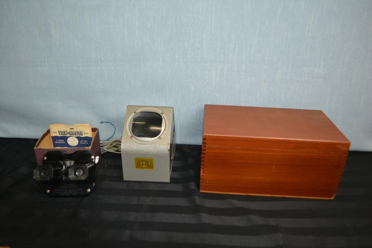 LOT 43. VINTAGE VIEW MASTER, SLIDE VIEWER AND WOOD BOX