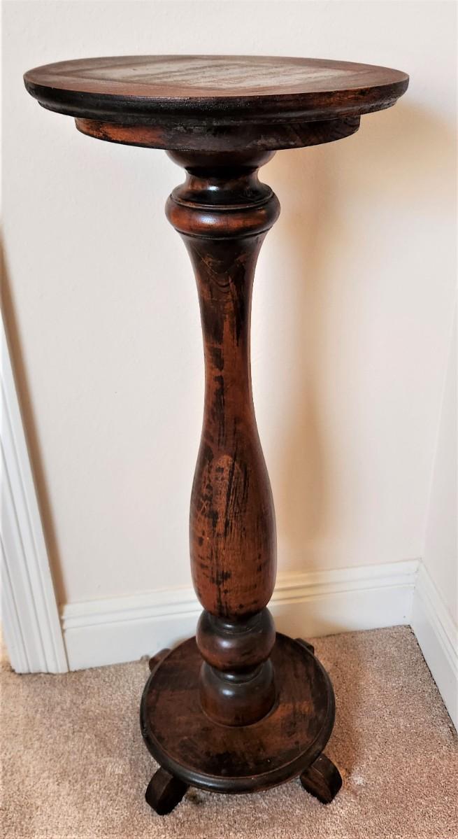 Antique oak pedestal/plant stand - vintage condition, as shown. 12.75" across, 35" tall.