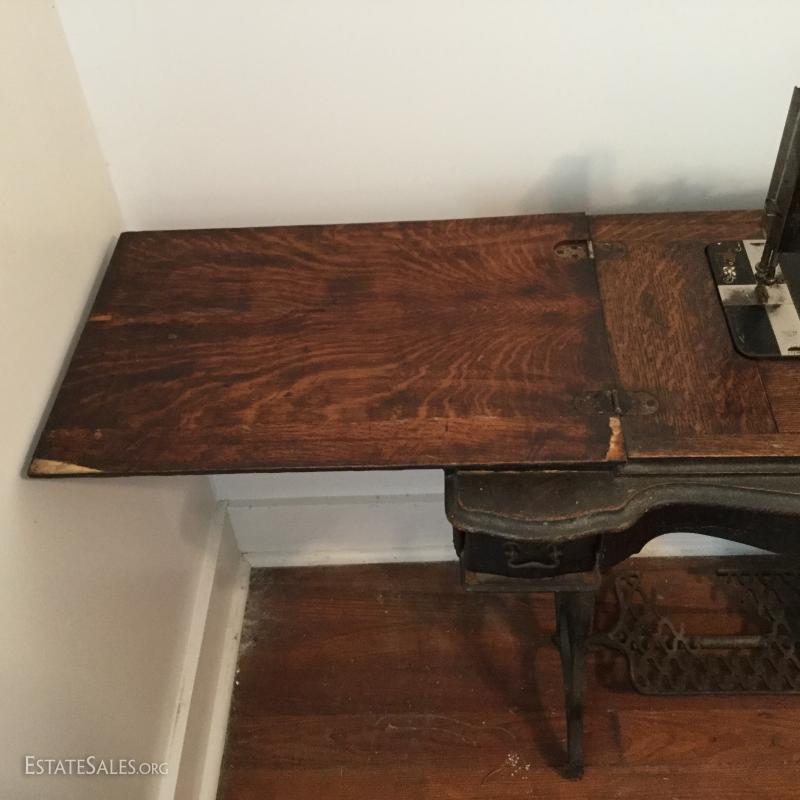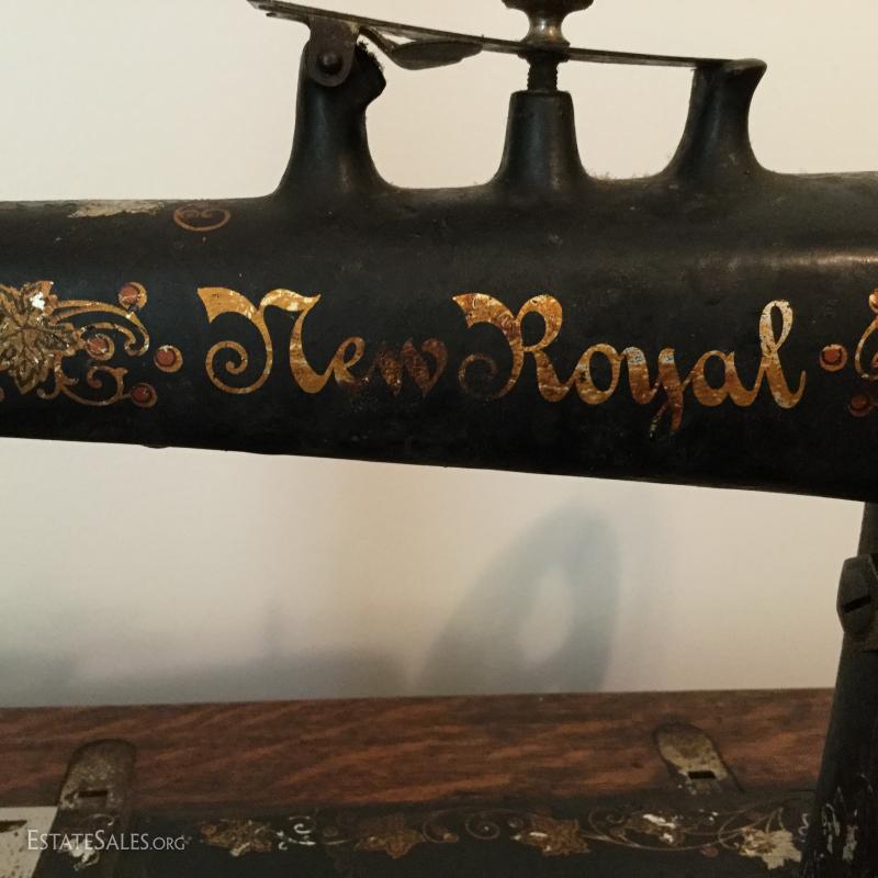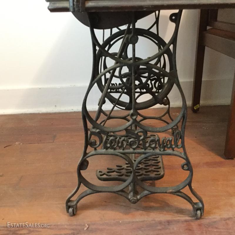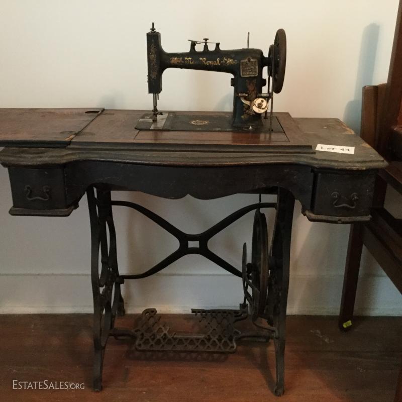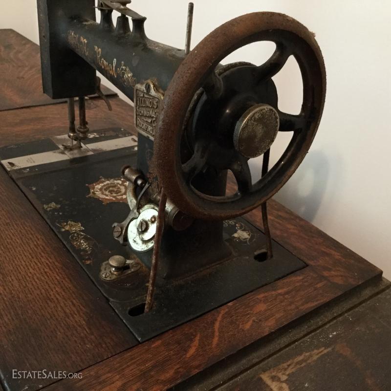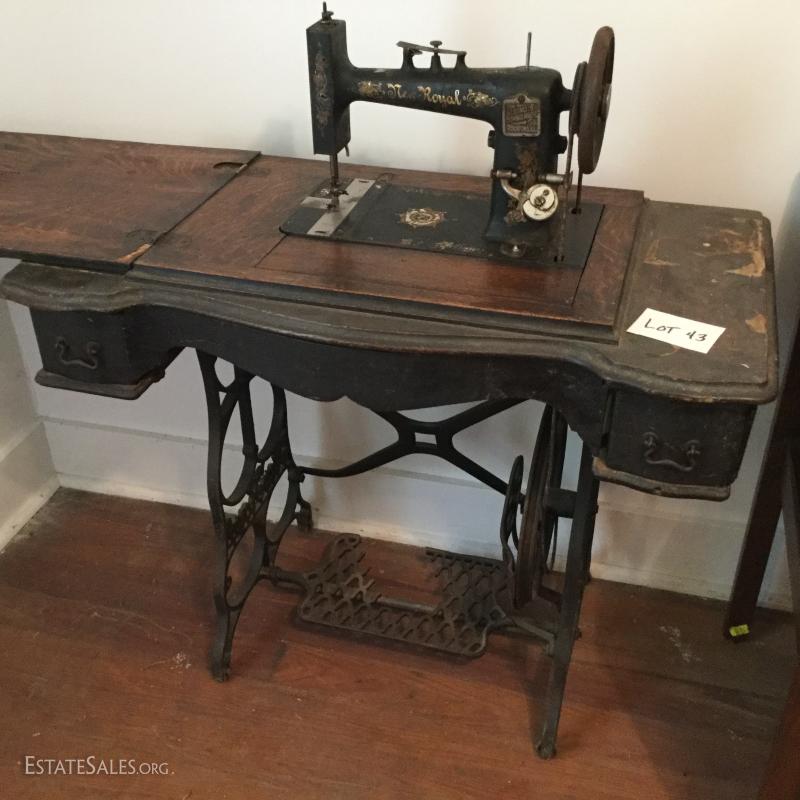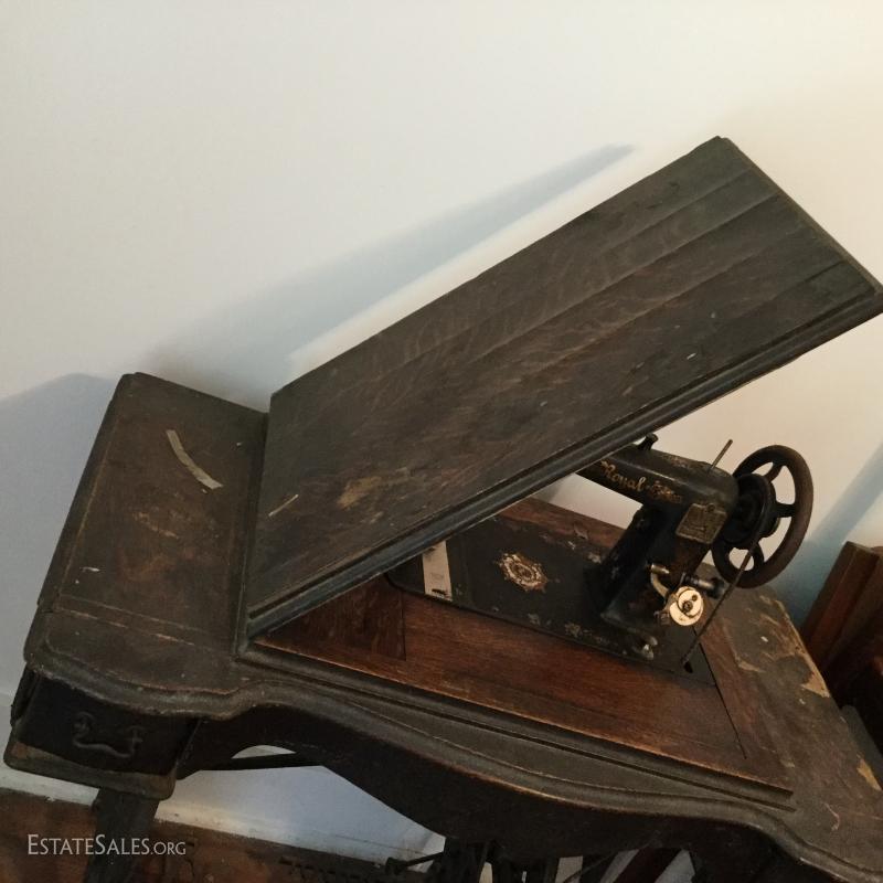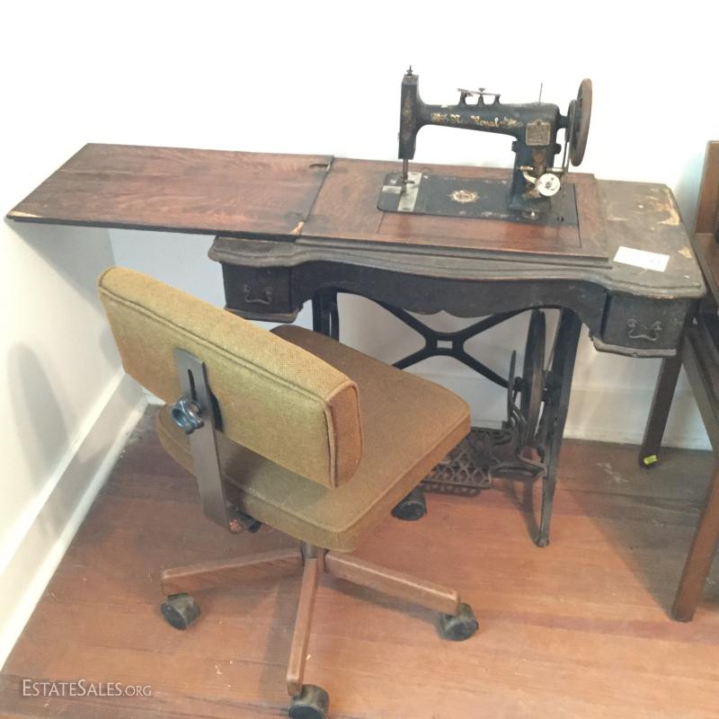Lot 43 - Antique Royal Sewing Machine in Table & Rolling Office Chair