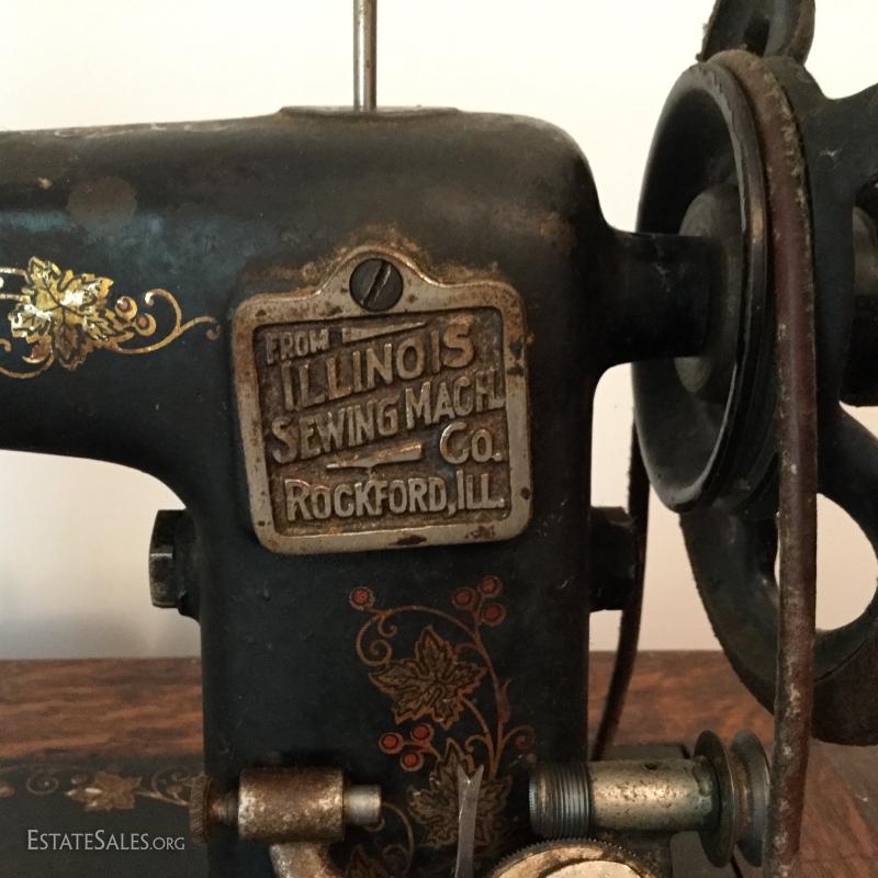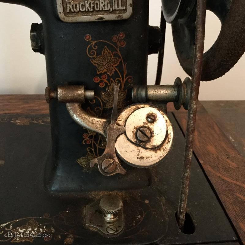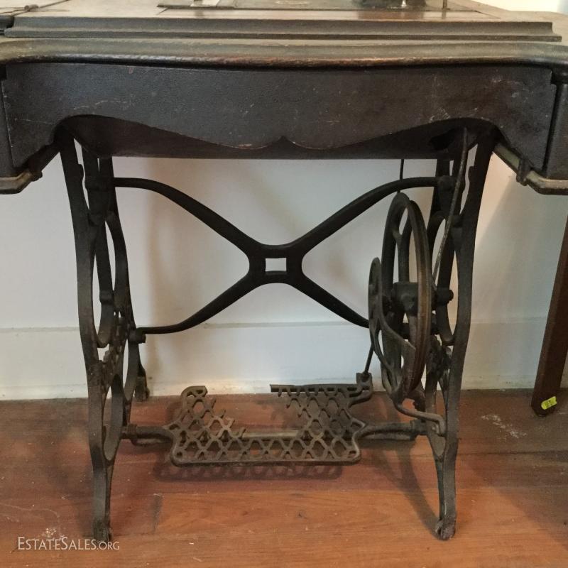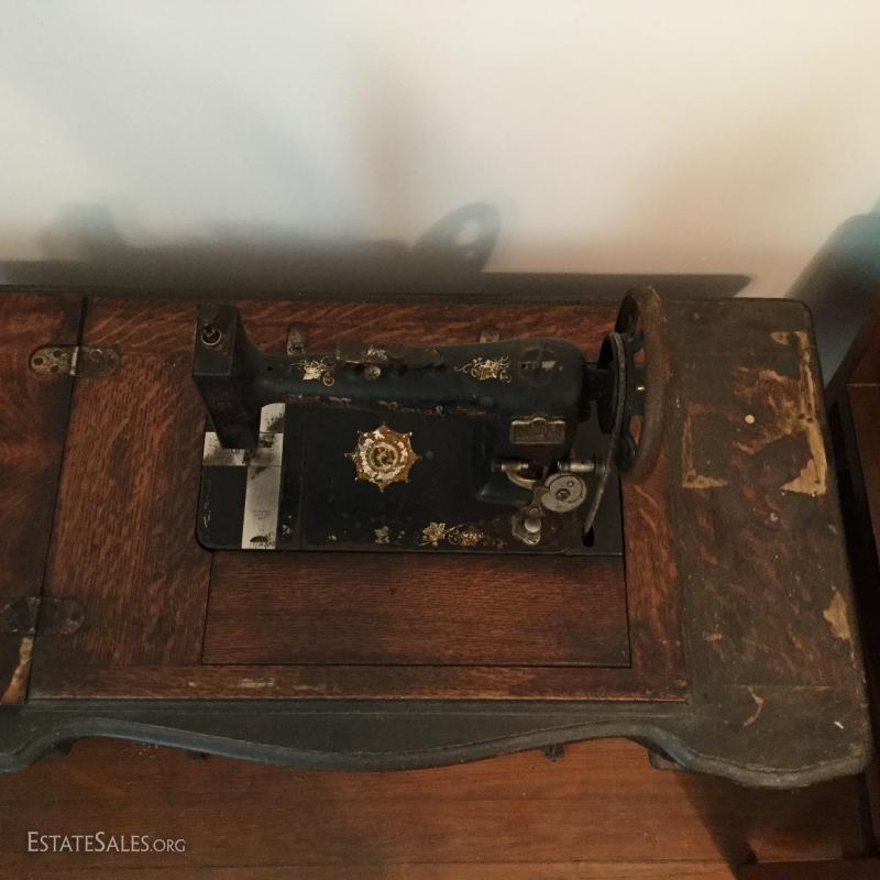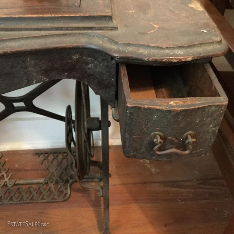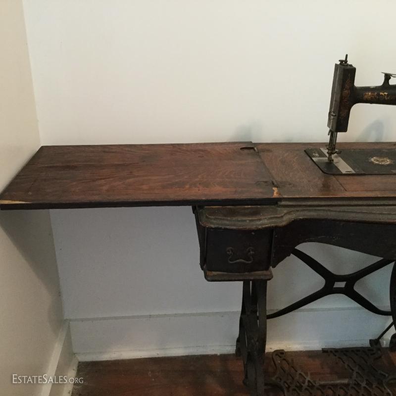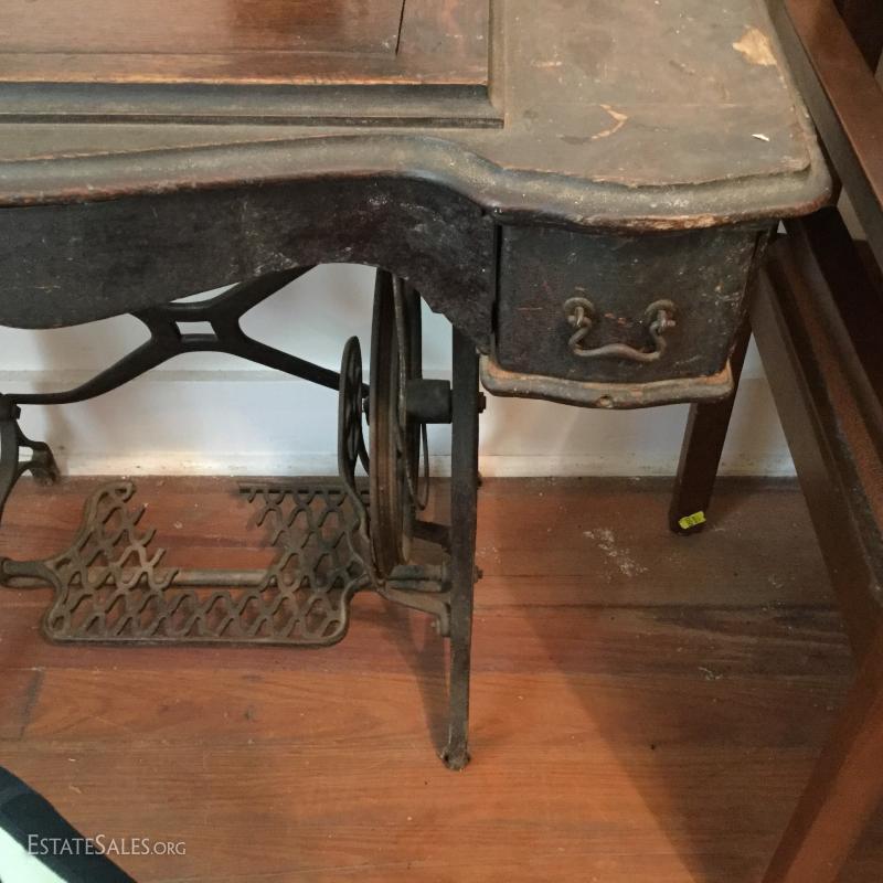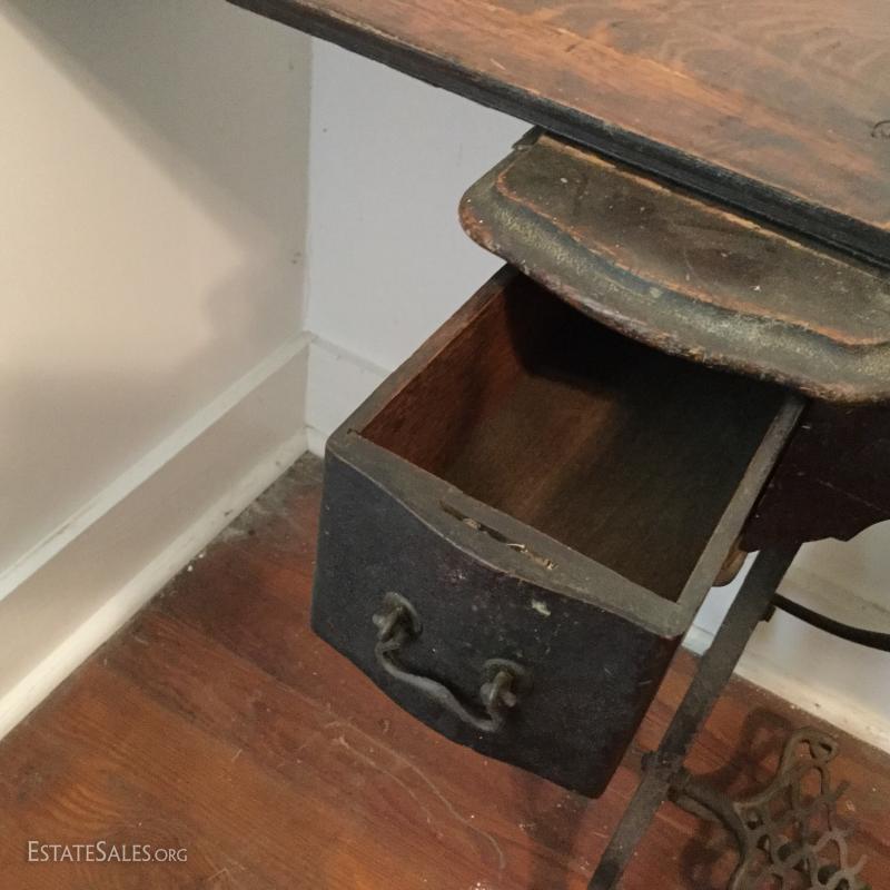 Lot 43 - Antique Royal Sewing Machine in Table & Rolling Office Chair
