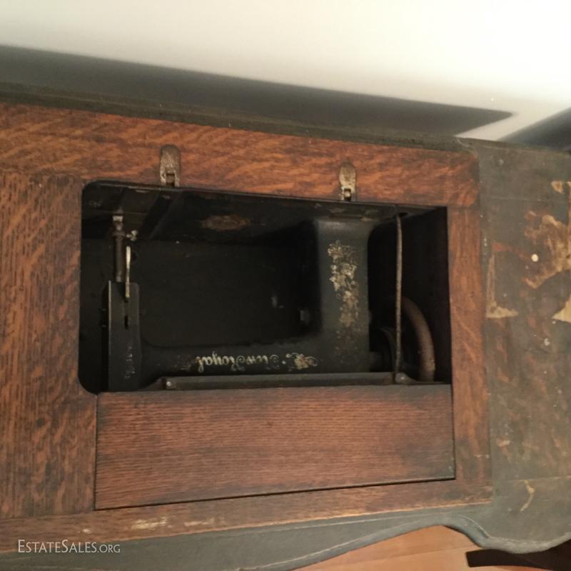 Sewing machine table: 34"L x 18.5"W x 30.5"H (open 49.5"H)