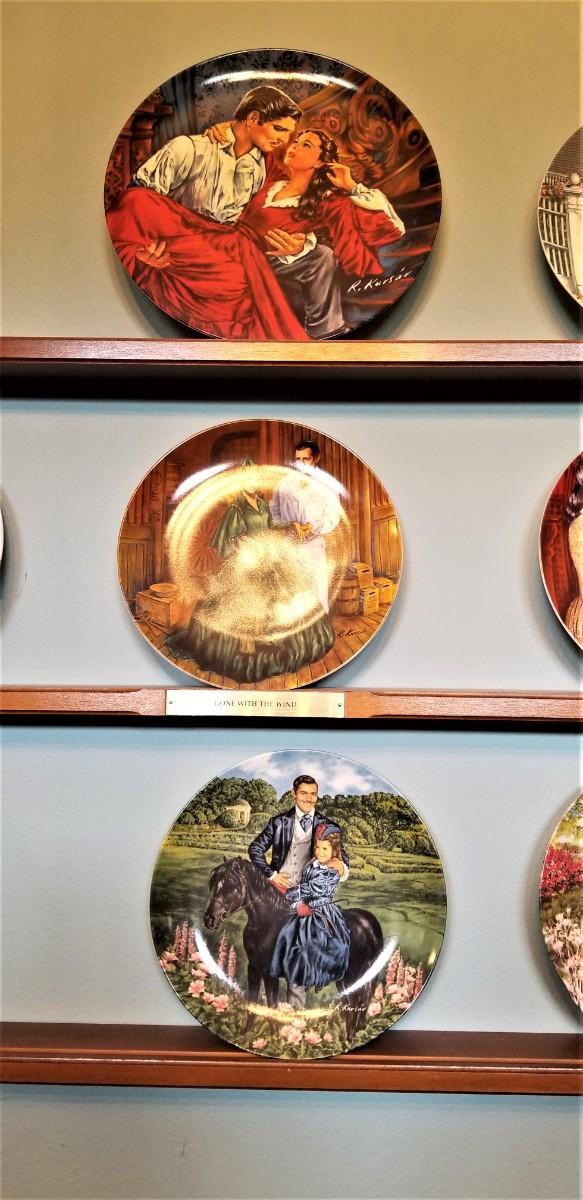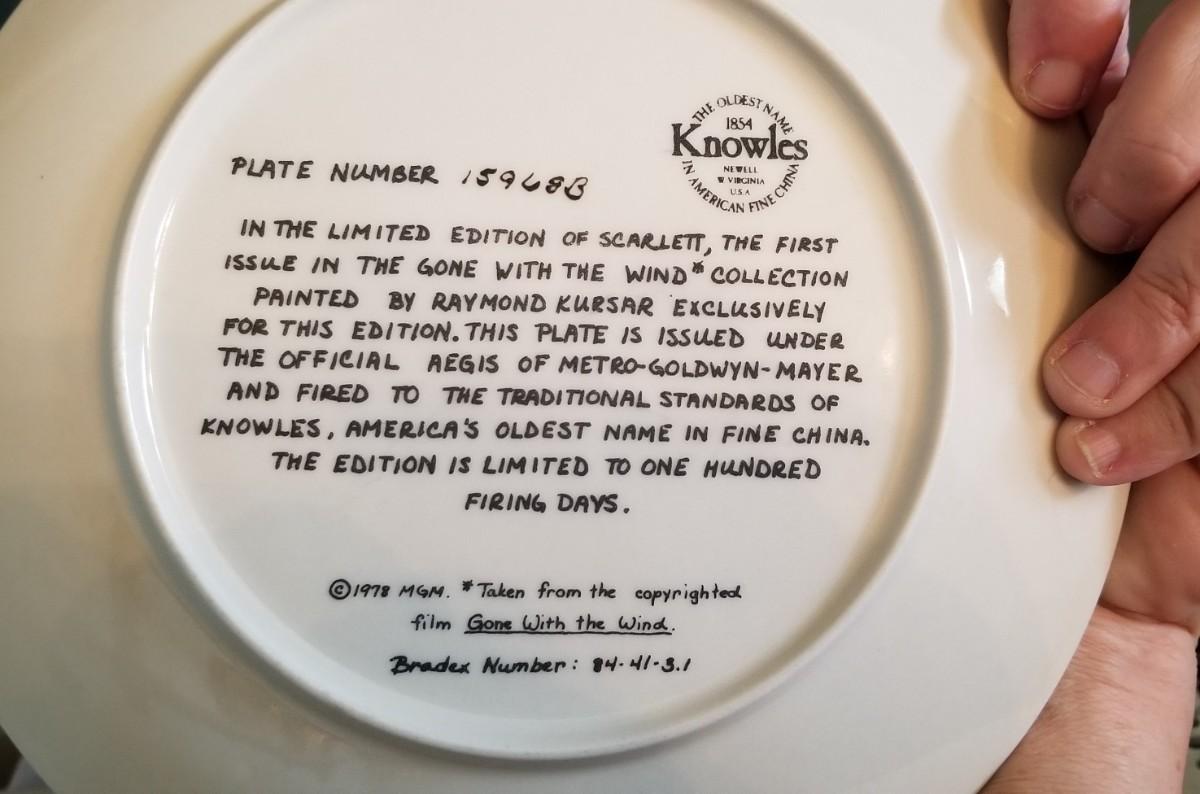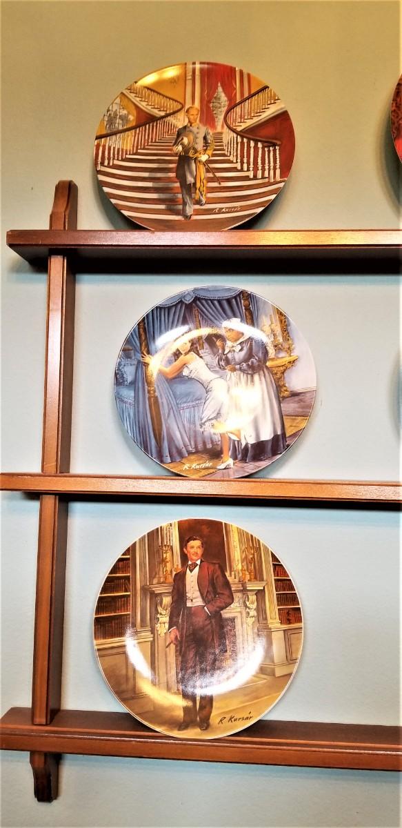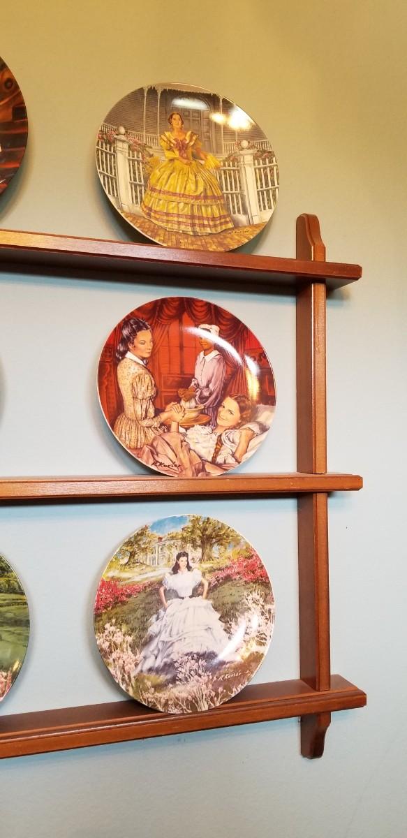 These plates are from the Knowles first series of Gone with the Wind Plates - no boxes - issued in 1978. You also get the rack that was given to those that bought the set - very hard to find. Rack is 41" across, 26" tall. Plates are in good condition.