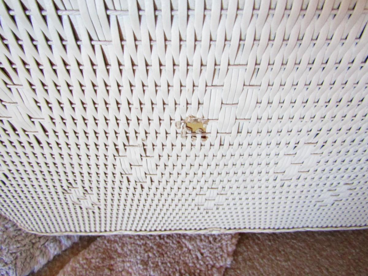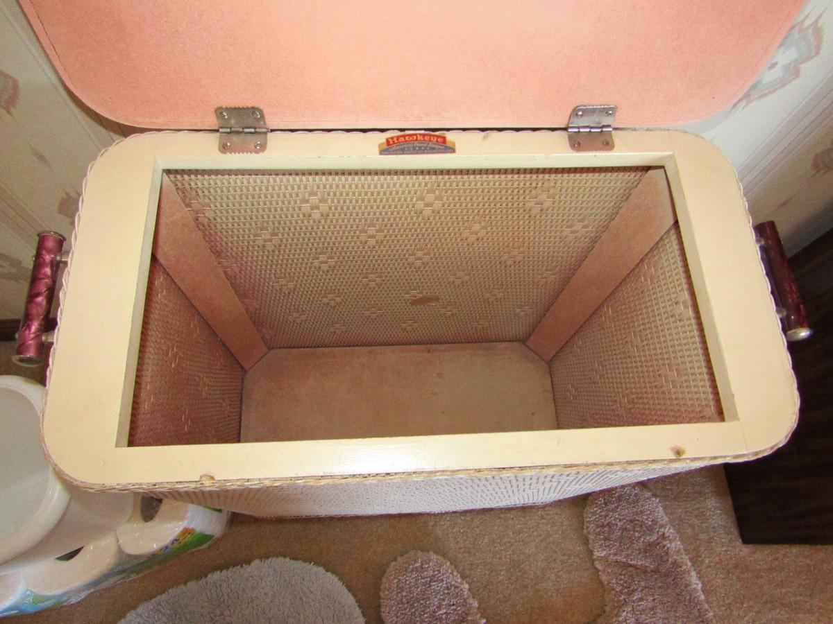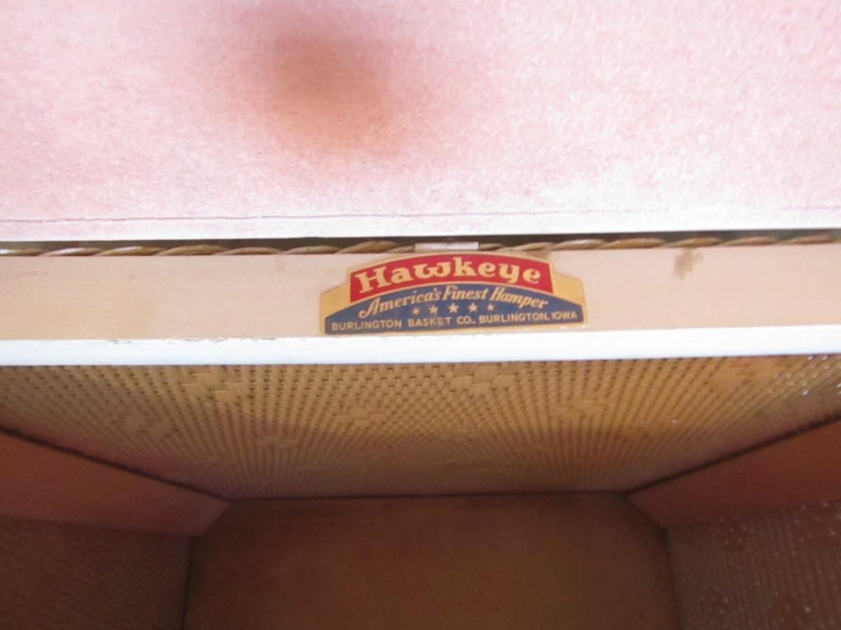 WICKER CLOTHES HAMPER WITH HARDTOP, IT HAS A SMALL TEAR ON THE BACKSIDE (SEE PIC)