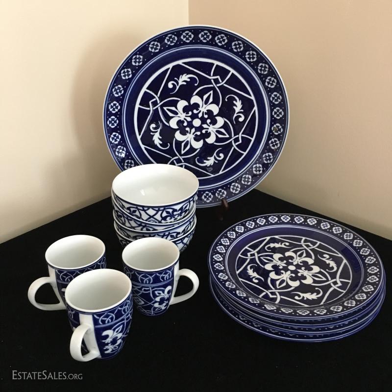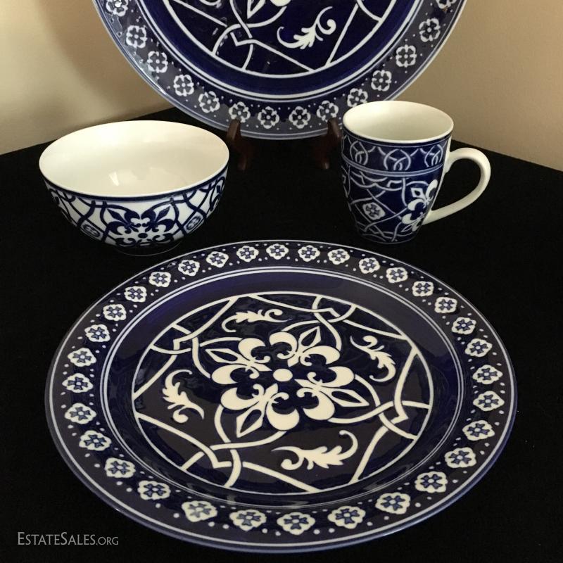 Target Home pattern set of 4 plates and bowls, 3 mugs and platter. This lot is available for local pick up in Mills River, NC only.