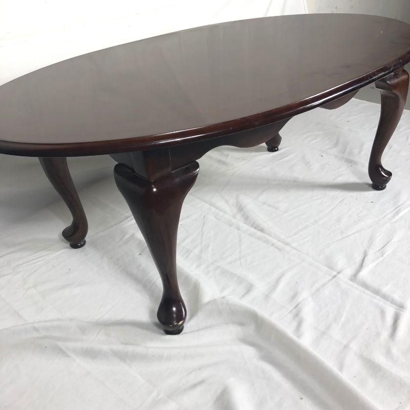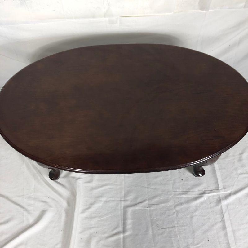 Classic Bombay Company Oval coffee table with Queen Anne legs. Dark cherry finish. 46" long x 27" wide x 17.5" high