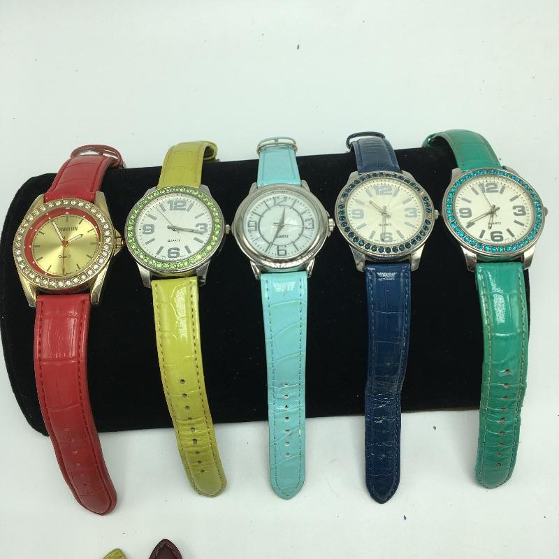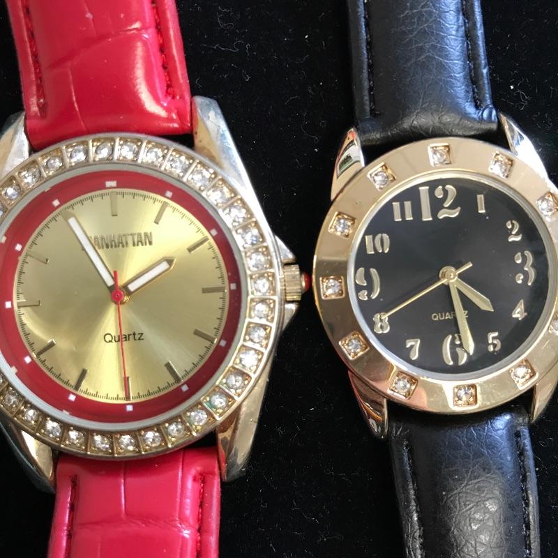 Bundle of blingy watches. Lot includes twelve watches with most of them having bling on the outside edge of the face. Most are Quartz. All watches appear to need new batteries.