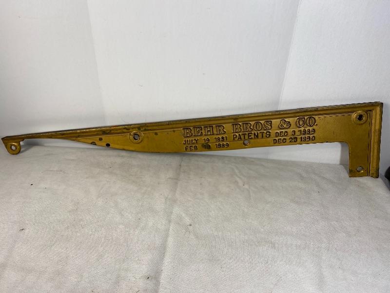 Lot# 43 Cast Iron BEHR Bros & Co. Piano Piece sign Hanger Steampunk Industrial