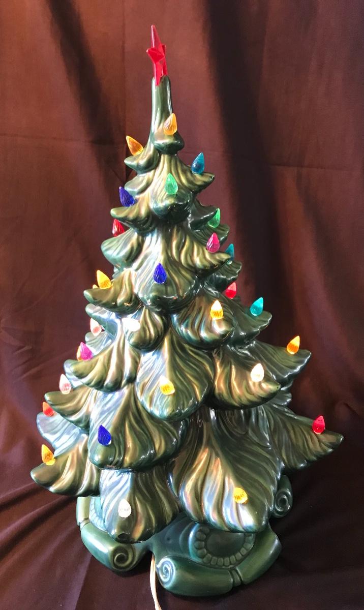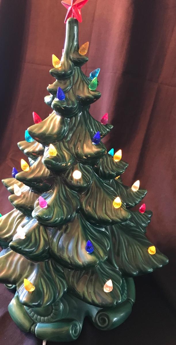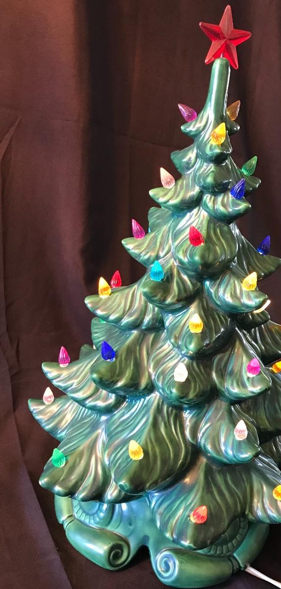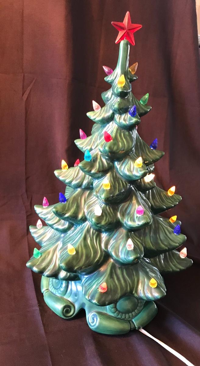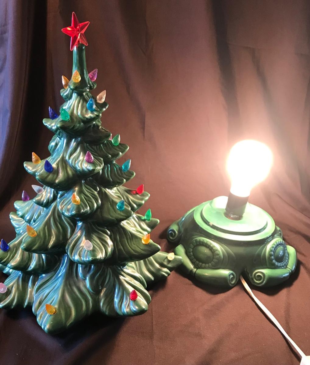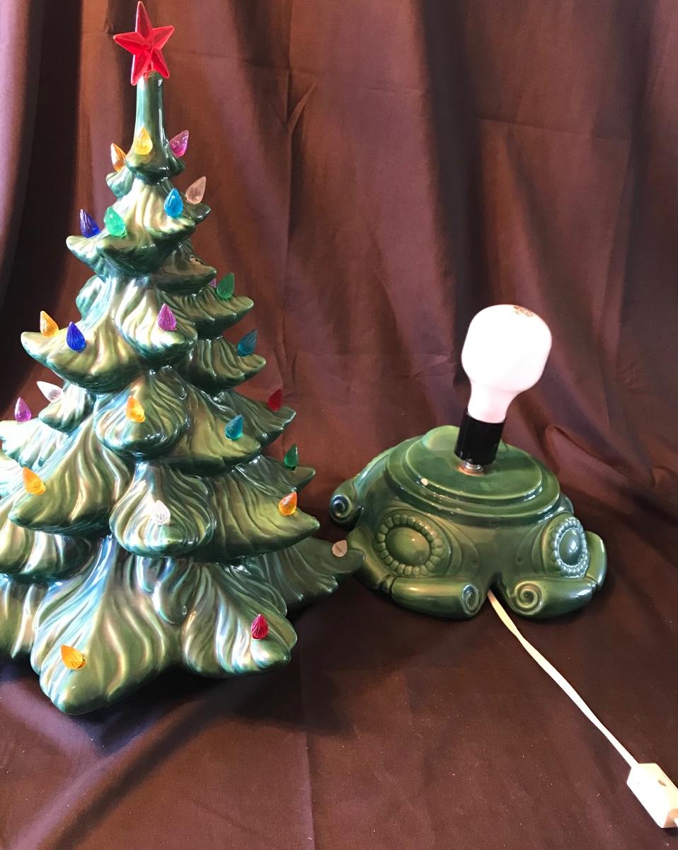 Ceramic Light Up Vintage 16-inch tall Christmas Tree. Approximately 12 inch diameter. In good working order. Missing one bulb. Some chips and cracks - mostly on the inside where the two pieces fit together but not visible when assembled, and one small chip on top - please see photos. Please see all pictures as they are the best representation of the items. The pictures show condition, measurements if taken, and what is included in the lot. Due to the large amount that we photograph and the time frame, we are not always able to take measurements. All items unless noted, are pre-owned and have been used. If you purchased furniture, you must bring help. We do not allow one person to carry large furniture out on their own. Bring help, tools and a truck for the safety of our client’s homes, and your personal safety. Company policy. Thank you.