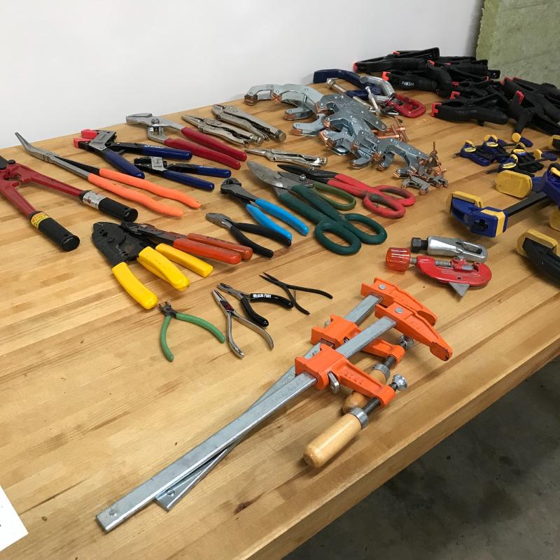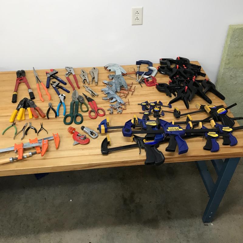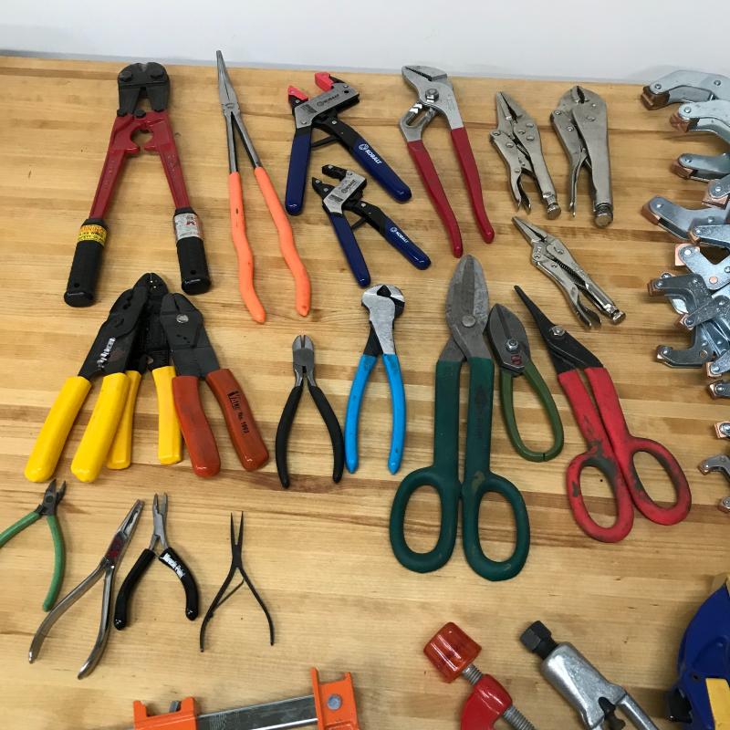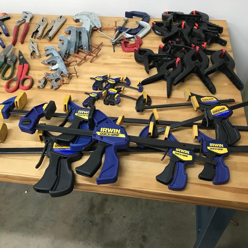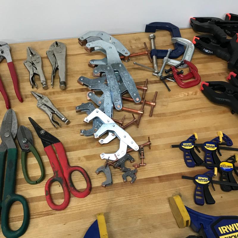 Set of Irwin Quick Clamps, Metal c Clamps, players, needle nose, and similar items. Lot is available for local pick up in asheville, NC only.