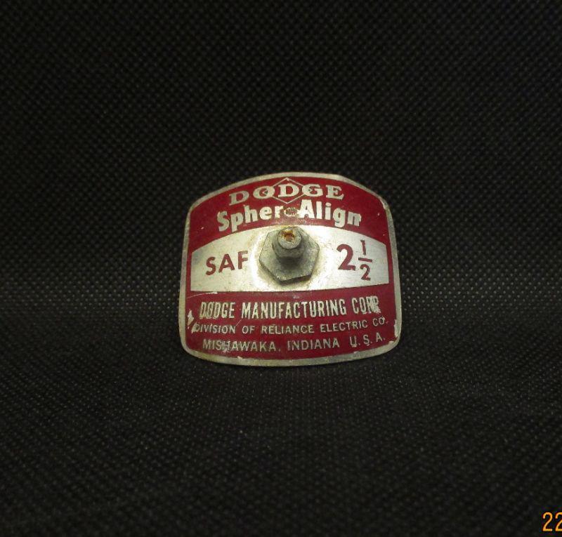 I'm not exactly sure what this was a plate for, but I was able to track it down to between 1967-1999. This Dodge was the not the automobile manufacturer, but a company in Indiana that became a leader in making pulleys. They were bought out by Reliance Electric Co in 1967 and then Reliance was bought out in 1999 (hence my dates). The plate is about 2" x 1.75". The link (you may have to copy and paste) gives a little history on the company. https://publichistory.iupui.edu/items/show/447