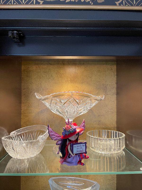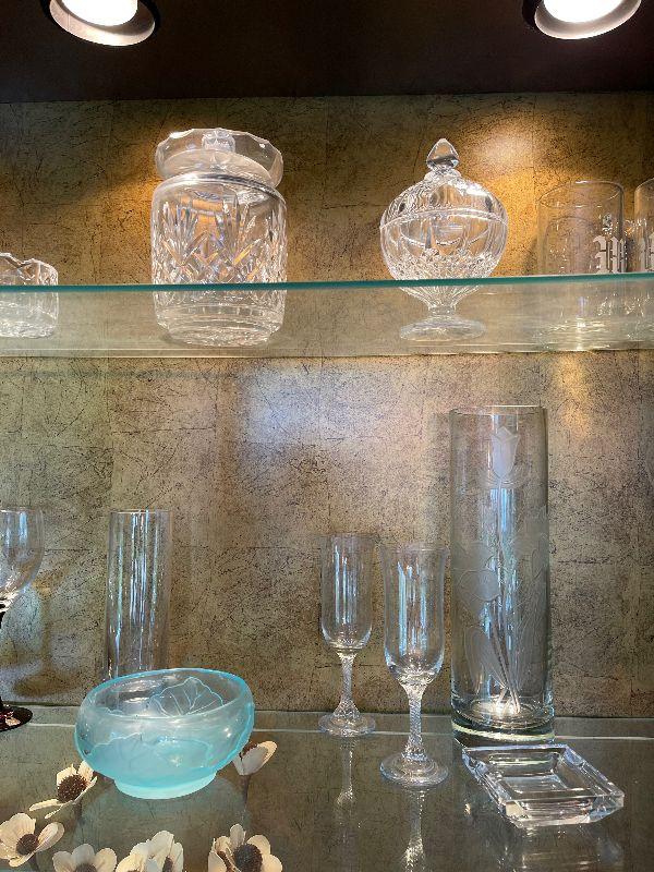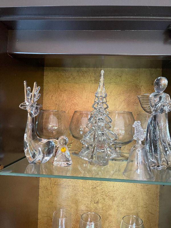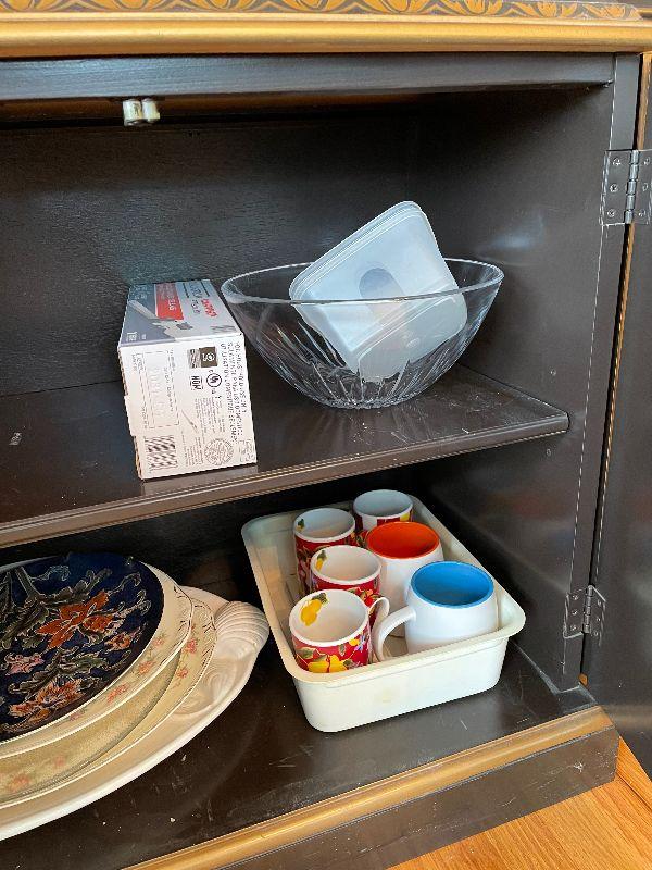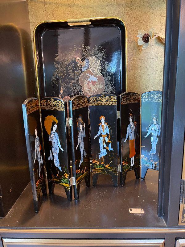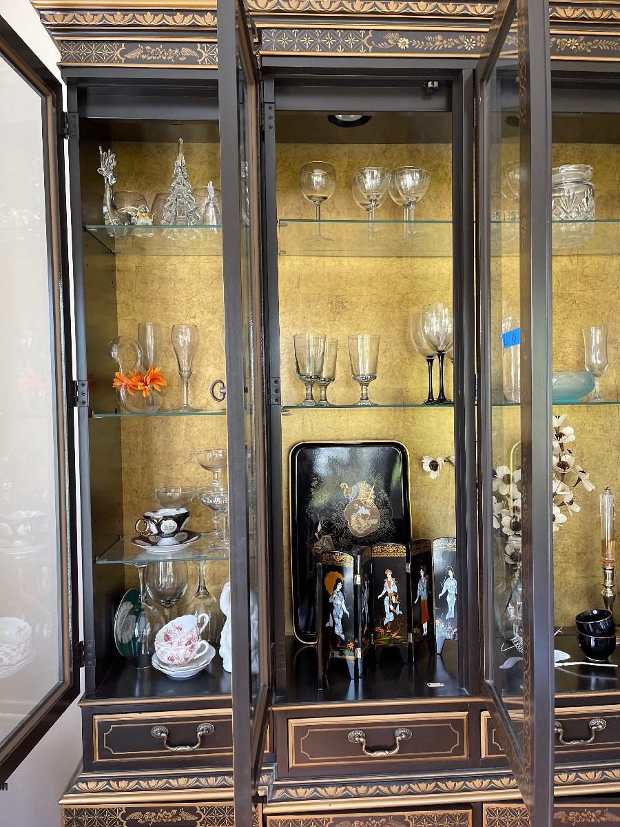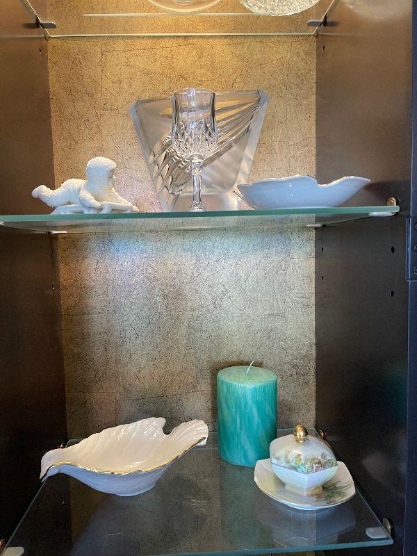Large Painted Lighted Cabinet and Contents including Lenox, Crystal Lacquer Tray and Much More!