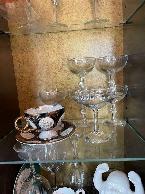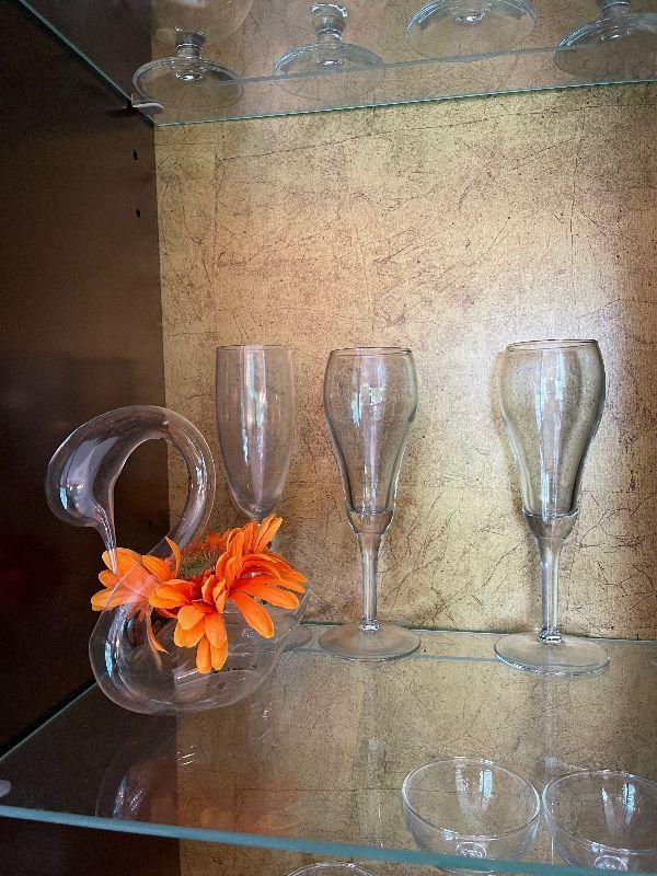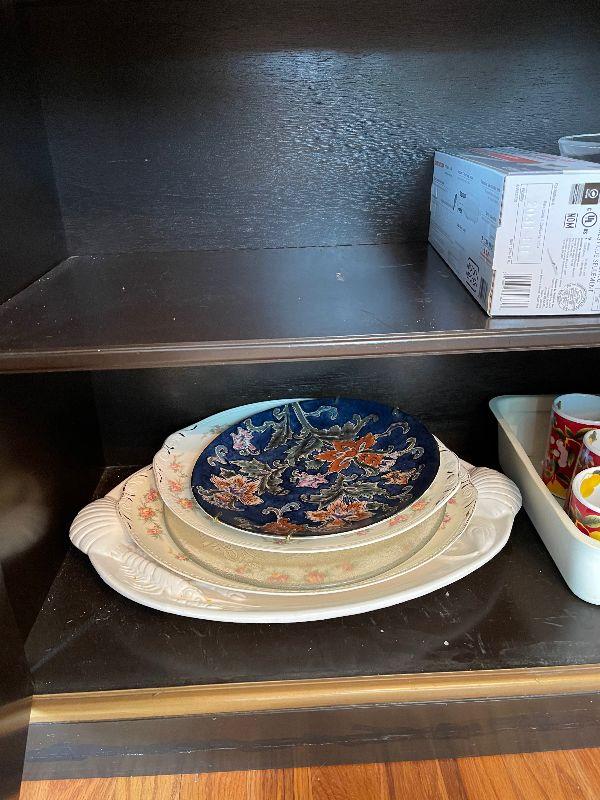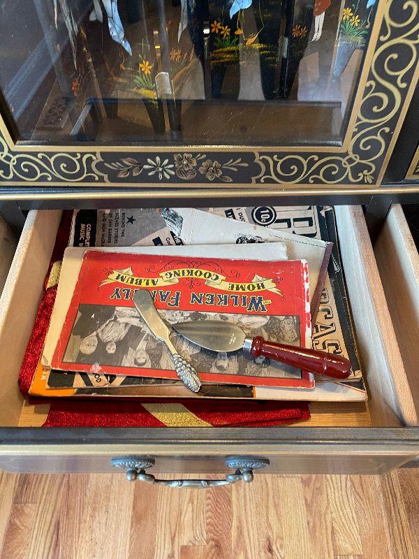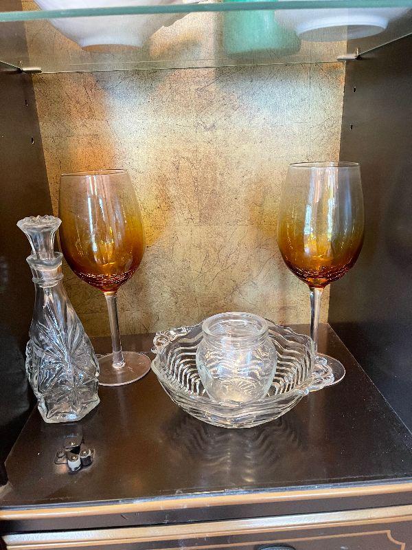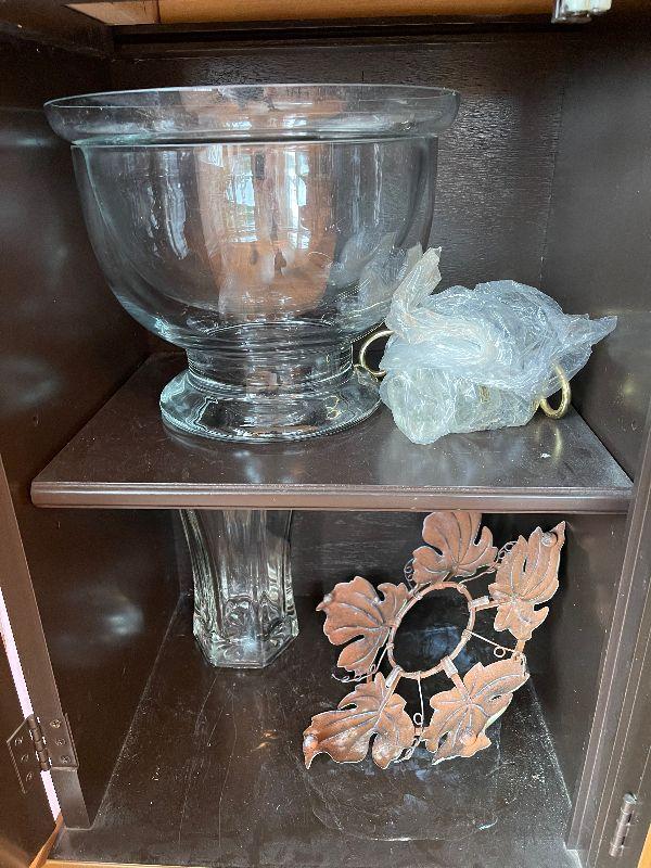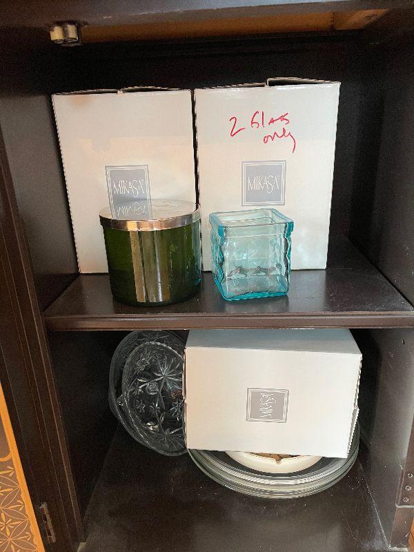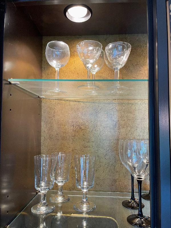 Large Painted Lighted Cabinet and Contents including Lenox, Crystal Lacquer Tray and Much More!