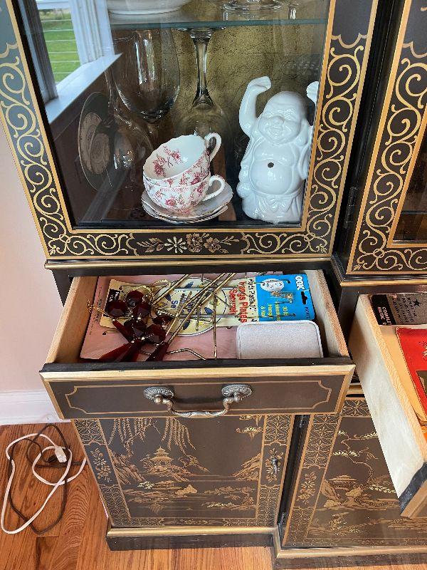 Lot 43 - Drexel Oriental China Cabinet and Contents