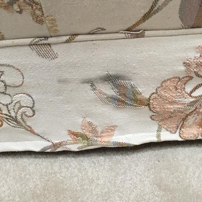 Couch measures 31” x 84” x 27.5” with a 17.5” seat height. Bring help item is substantial. Couch has a small stain towards bottom, see pictures.