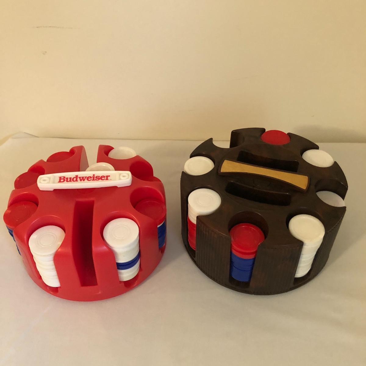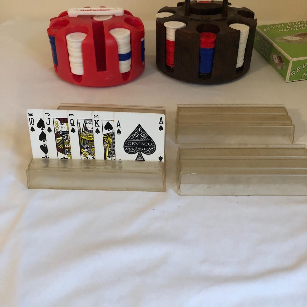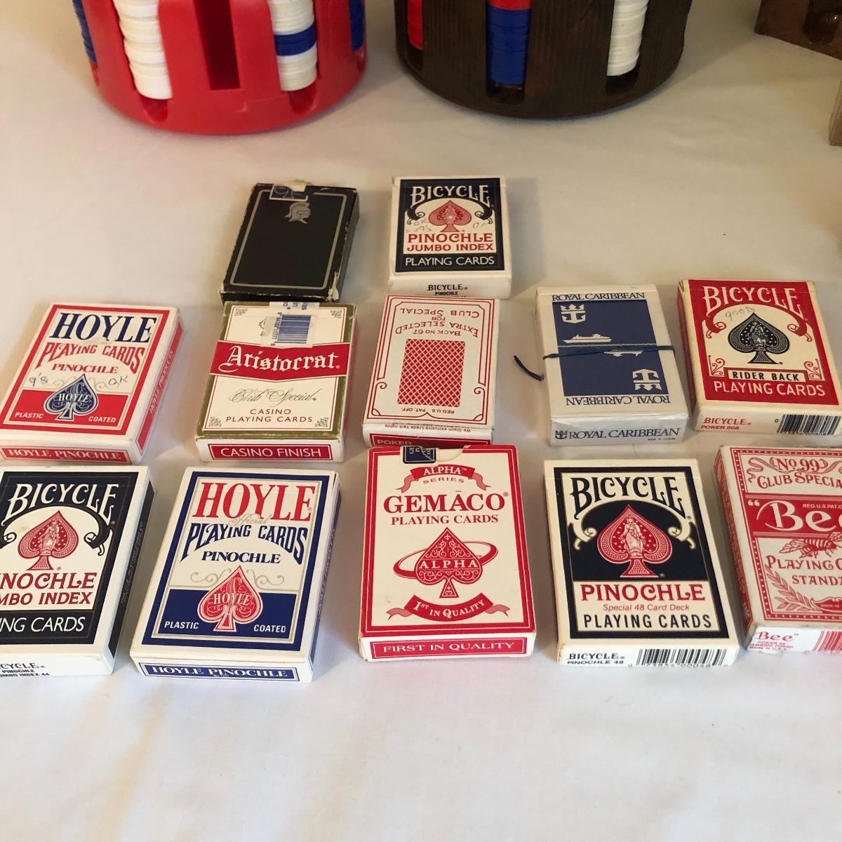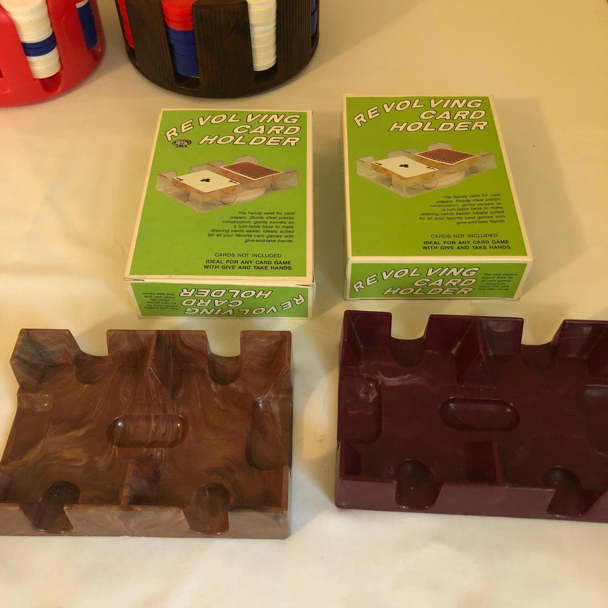 All you need for a fun night playing poker with friends. This all inclusive lot includes 10 plus packs of cards, 2 chip holders full of chips, 2 revolving card holders and much more.