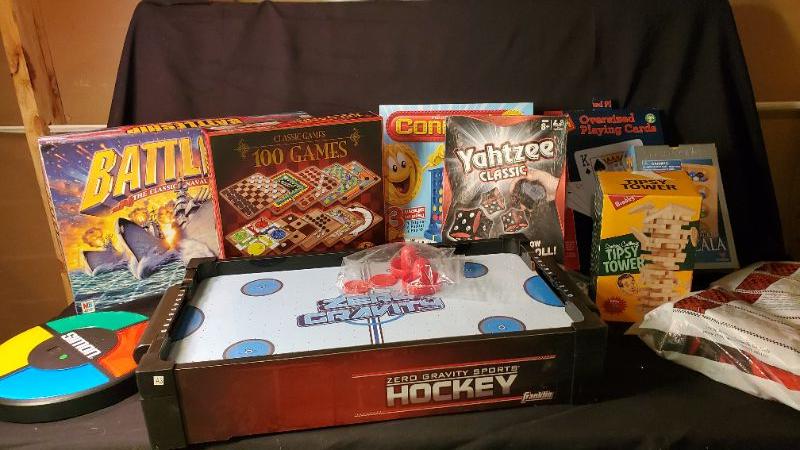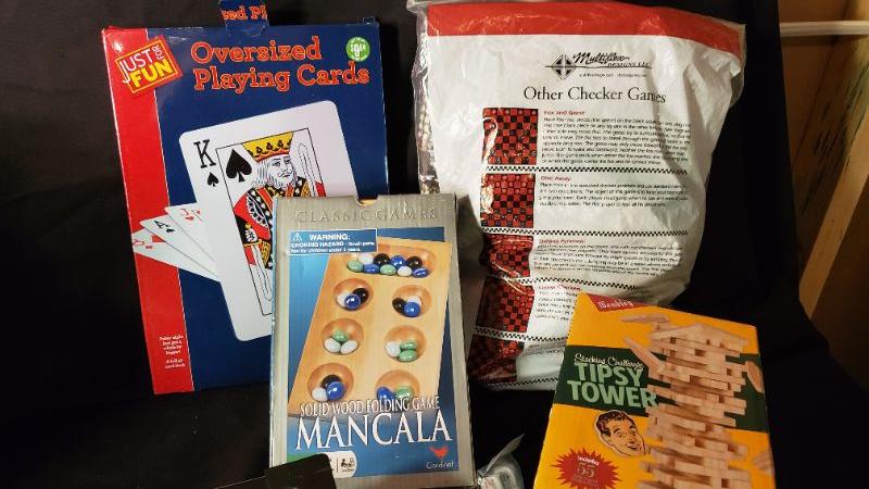 Board games, giant deck of cards, Simon, Mancala, Zero Gravity table top hockey game, and more.