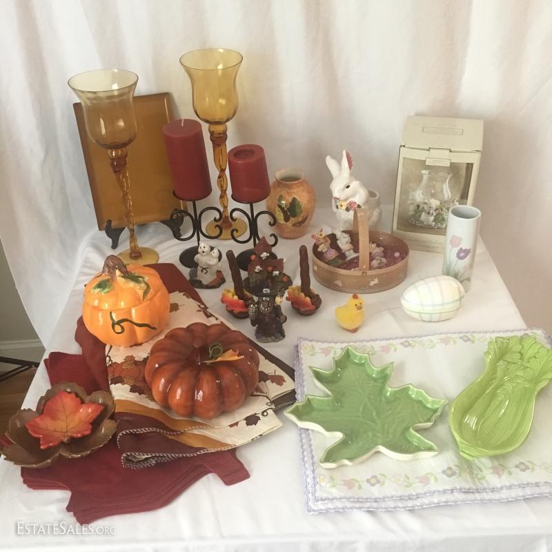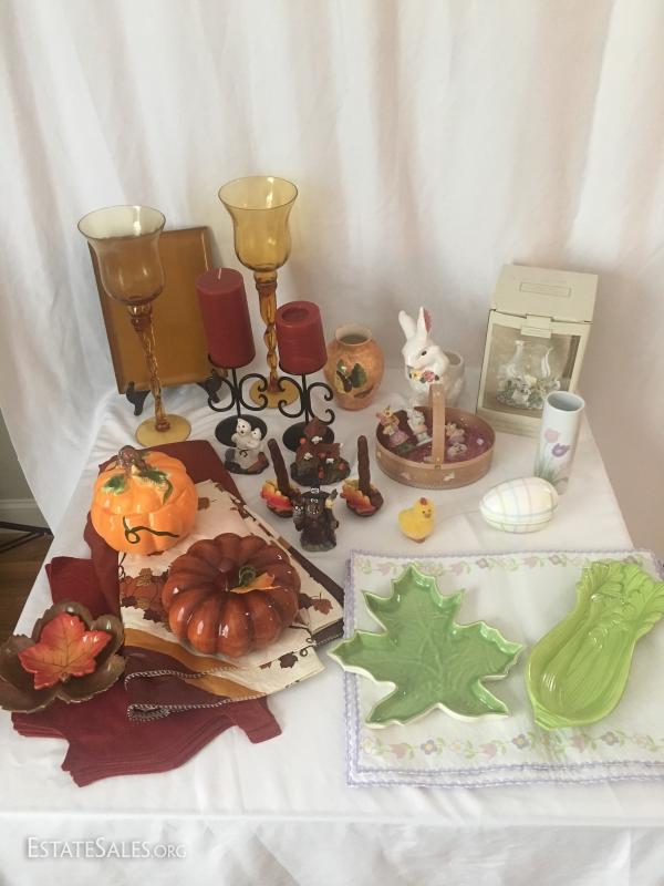 Fall and spring decor plus Halloween, Thanksgiving and Easter. All in good condition and retail bought. This lot is available for local pick up in Asheville, NC only.