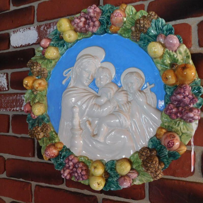 After the painting by Rafael, "The Virgin of the Chair" Della Robbia ceramic plaque by Studio Tecnuo Ceramiche, Fiorentino, Italy