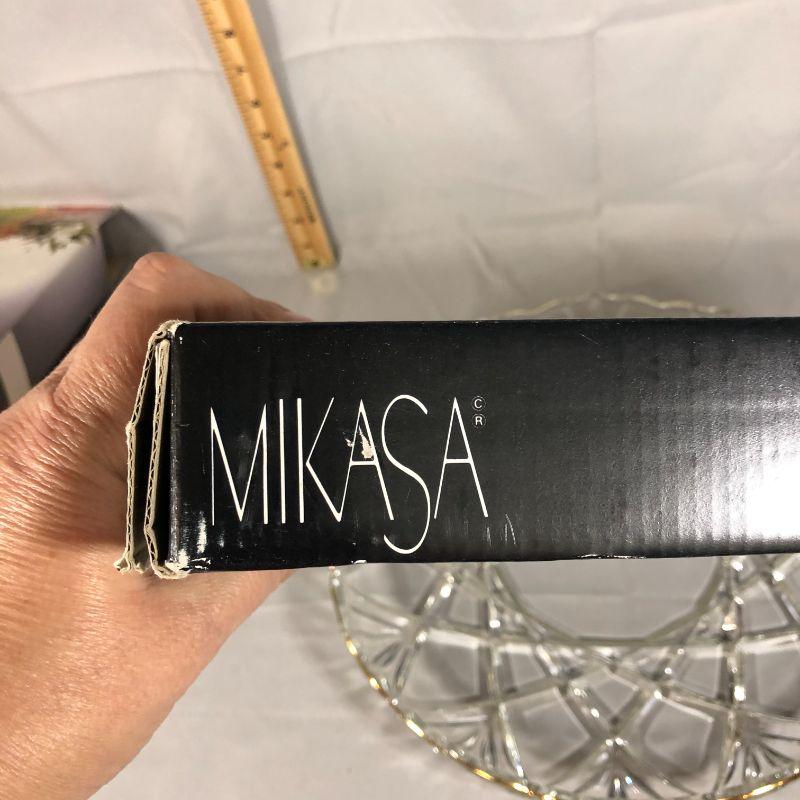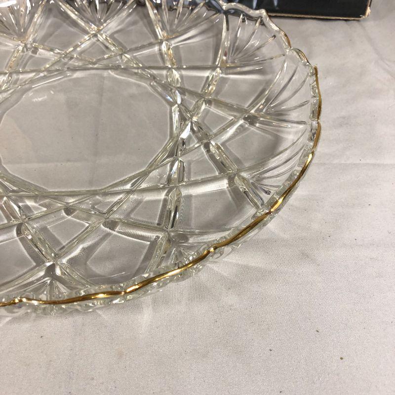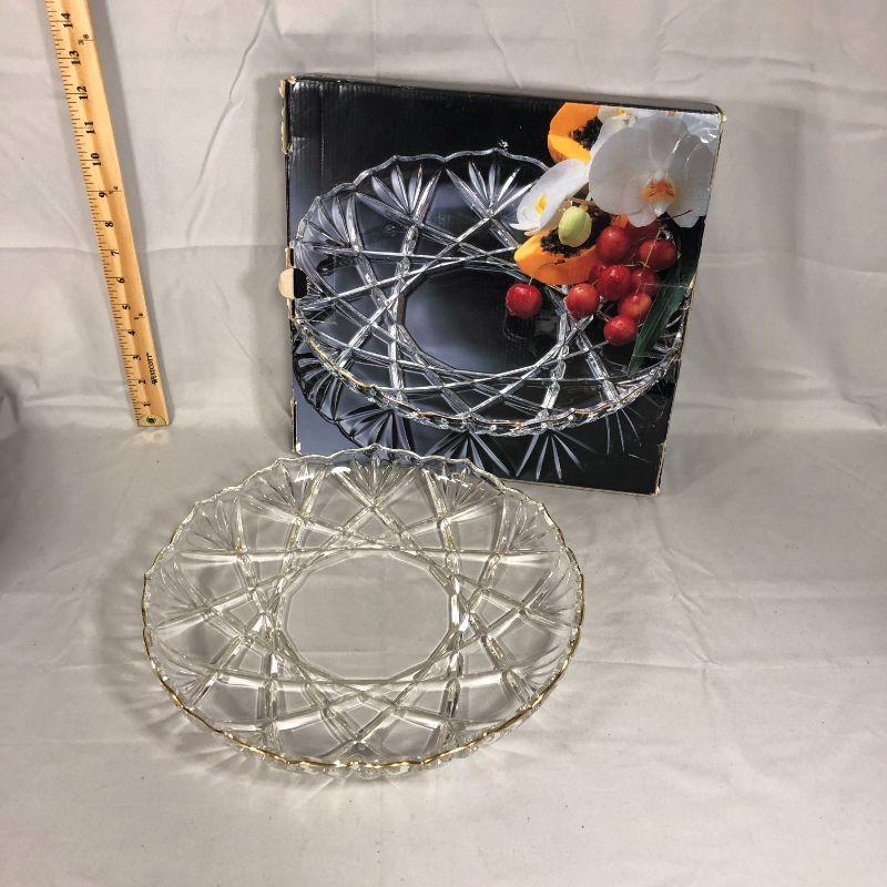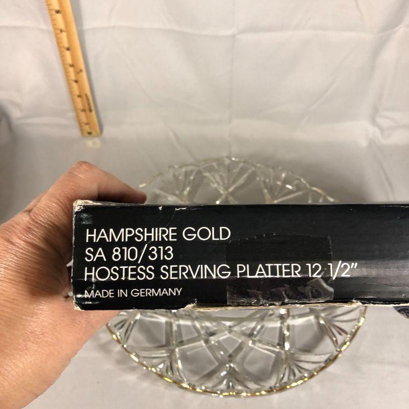 This piece is in like new (I think that it probably is never used) condition. It is the Hampshire Gold pattern and about 12.5" in diameter.