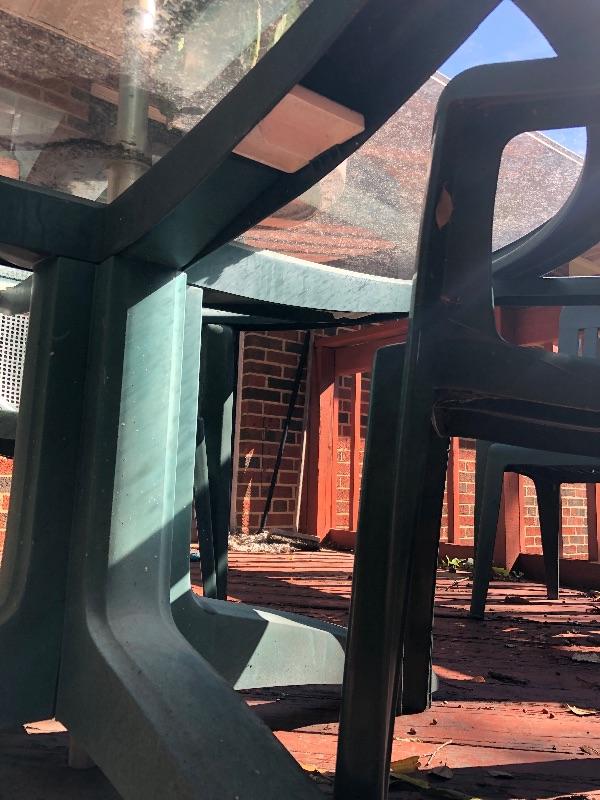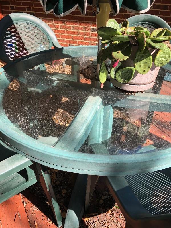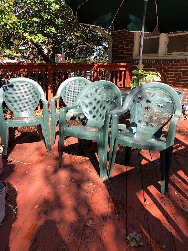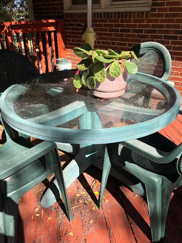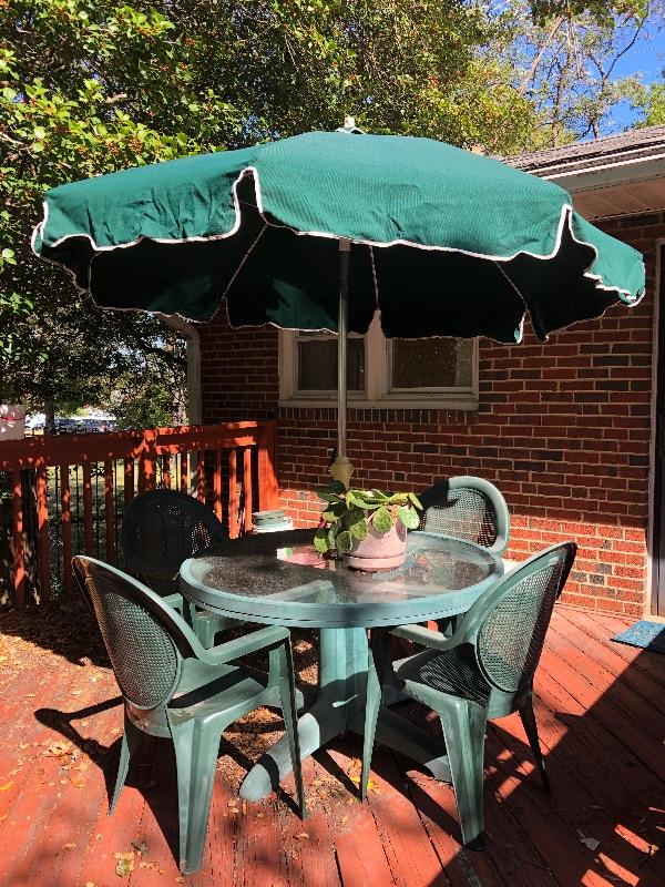 Outdoor Patio Set with 4' round table, four chairs and umbrella!