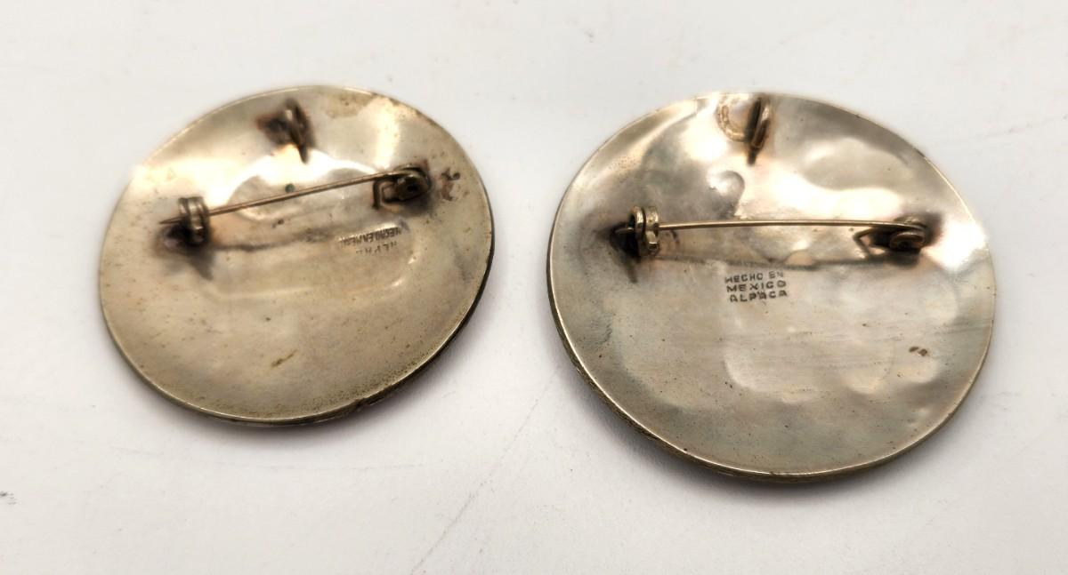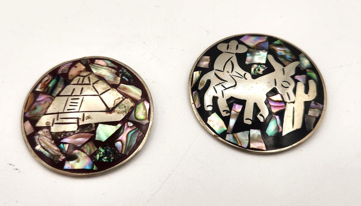 Lot #43 Pair of Alpaca Mexican Silver Brooches with Mother of Pearl Inlay