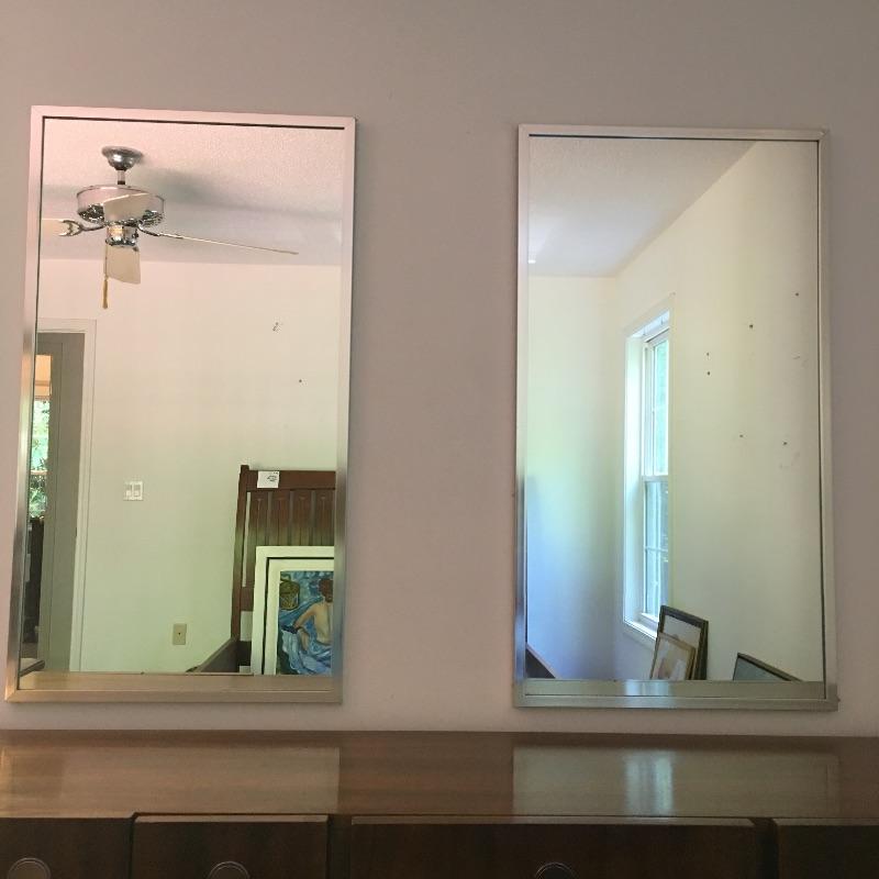 Pair of chrome mirrors that measure 24” x 44”. You can see yourself with these beauties. Bring help items are substantial.