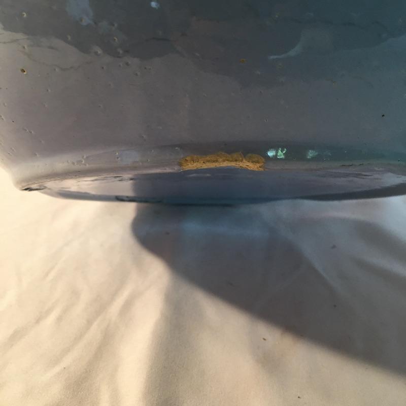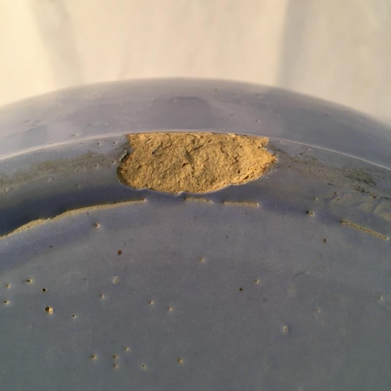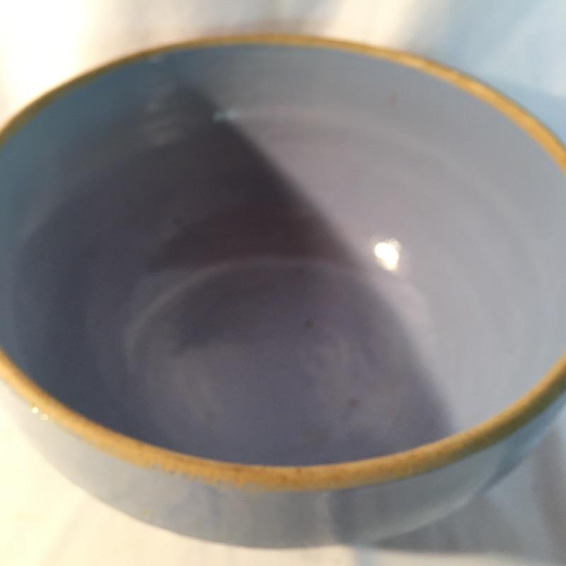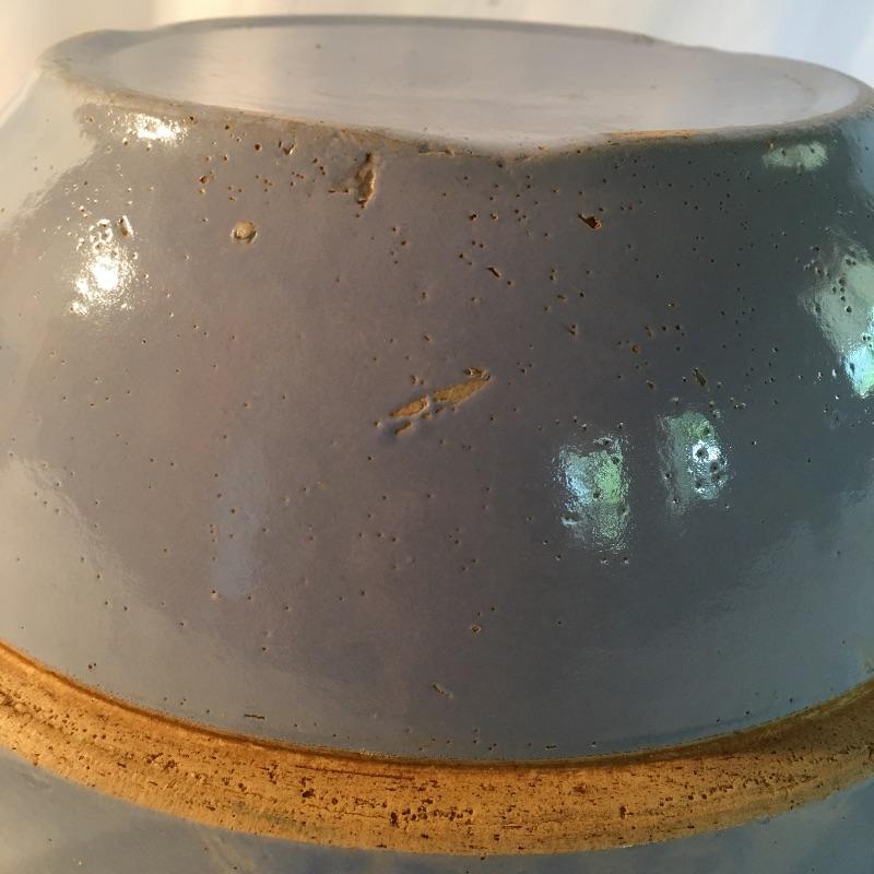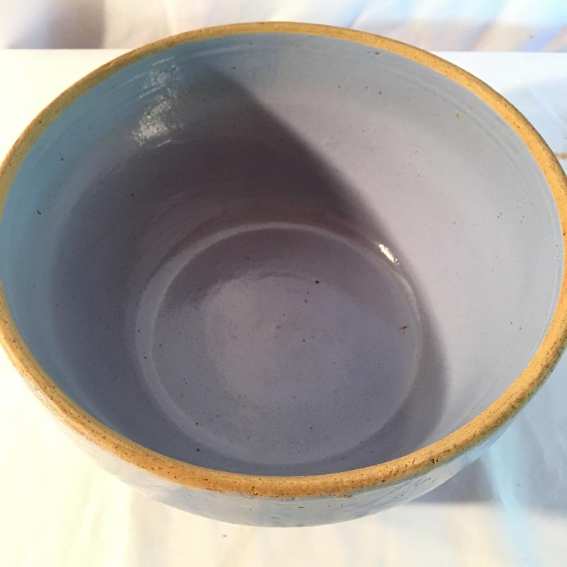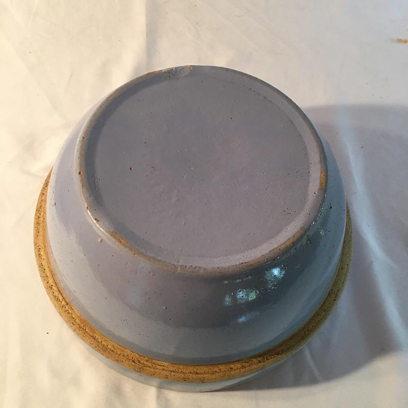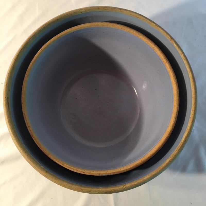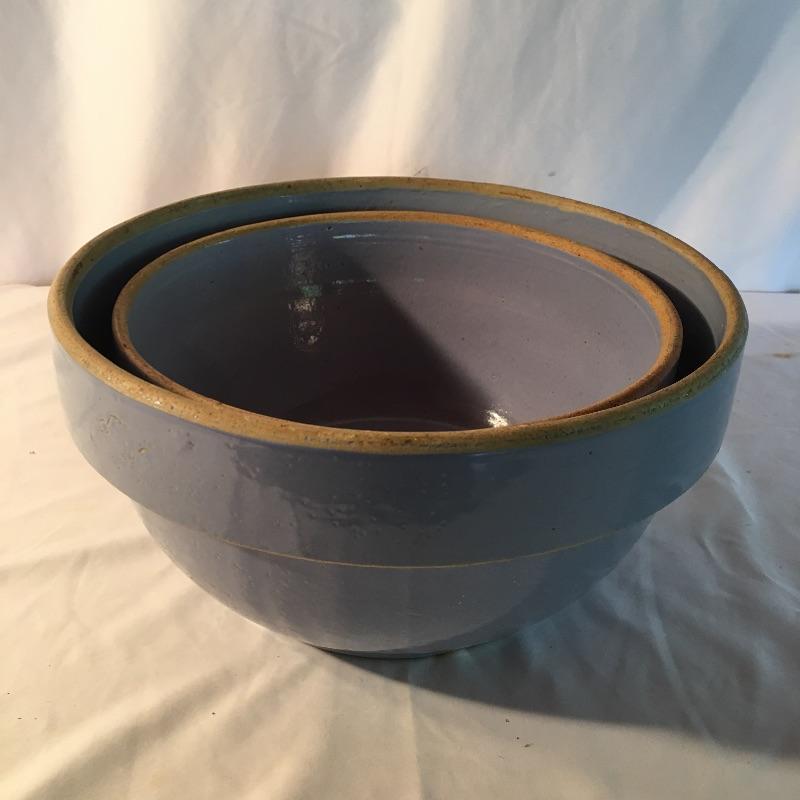 This pair of clay mixing bowls are sure to make your baking a breeze with their large size. Smaller bowl nests into bigger bowl for easy storage. Largest bowl measures 12.5”D x 6.25” tall. Largest bowl has chip on bottom, see pictures.