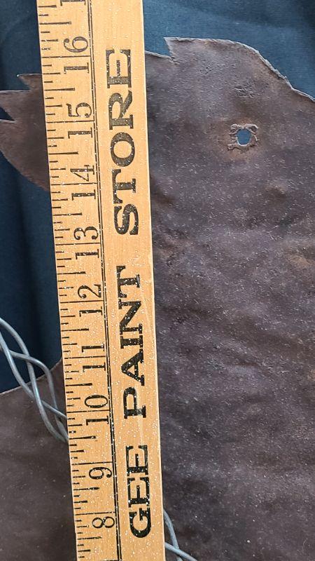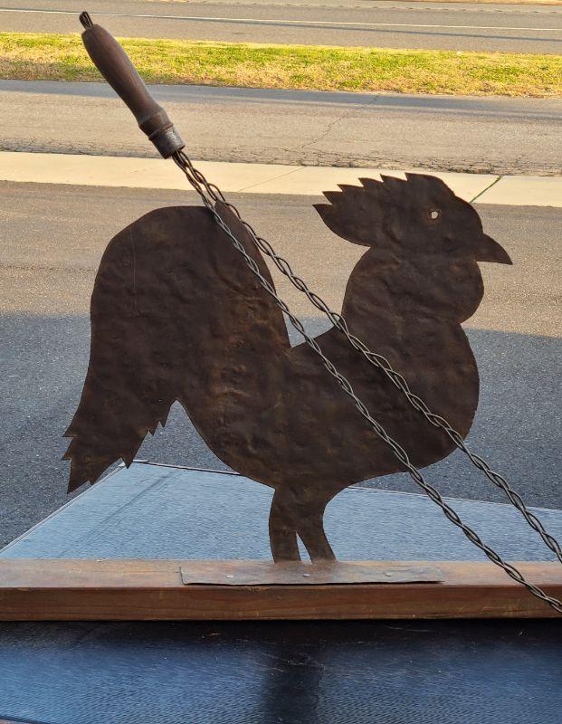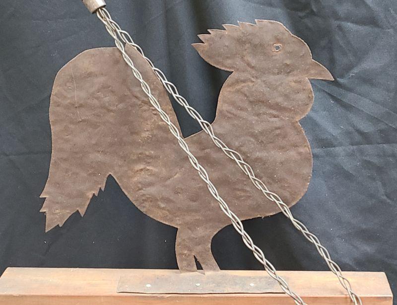 Large primitive metal cut rooster on board. Board is 2 feet long. Rooster is 16 x16 inches. Antique rug beater included. Please see all pictures for condition of the items listed and what is included in the lot. Pictures will also show any measurements if taken and is the best representation of the items. Thank you for looking and have fun bidding! We appreciate Treasure Hunters!
