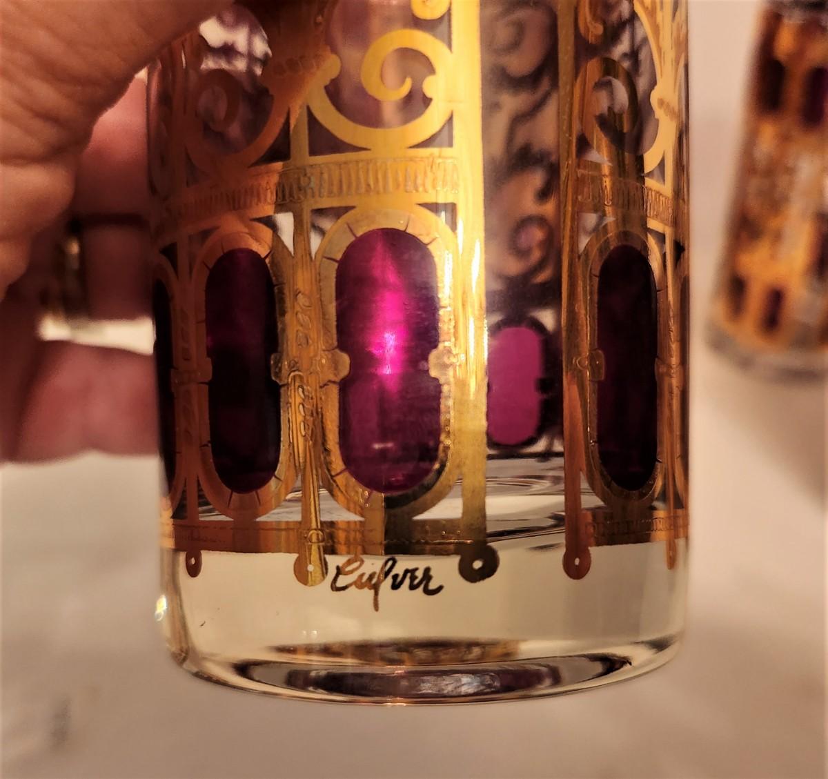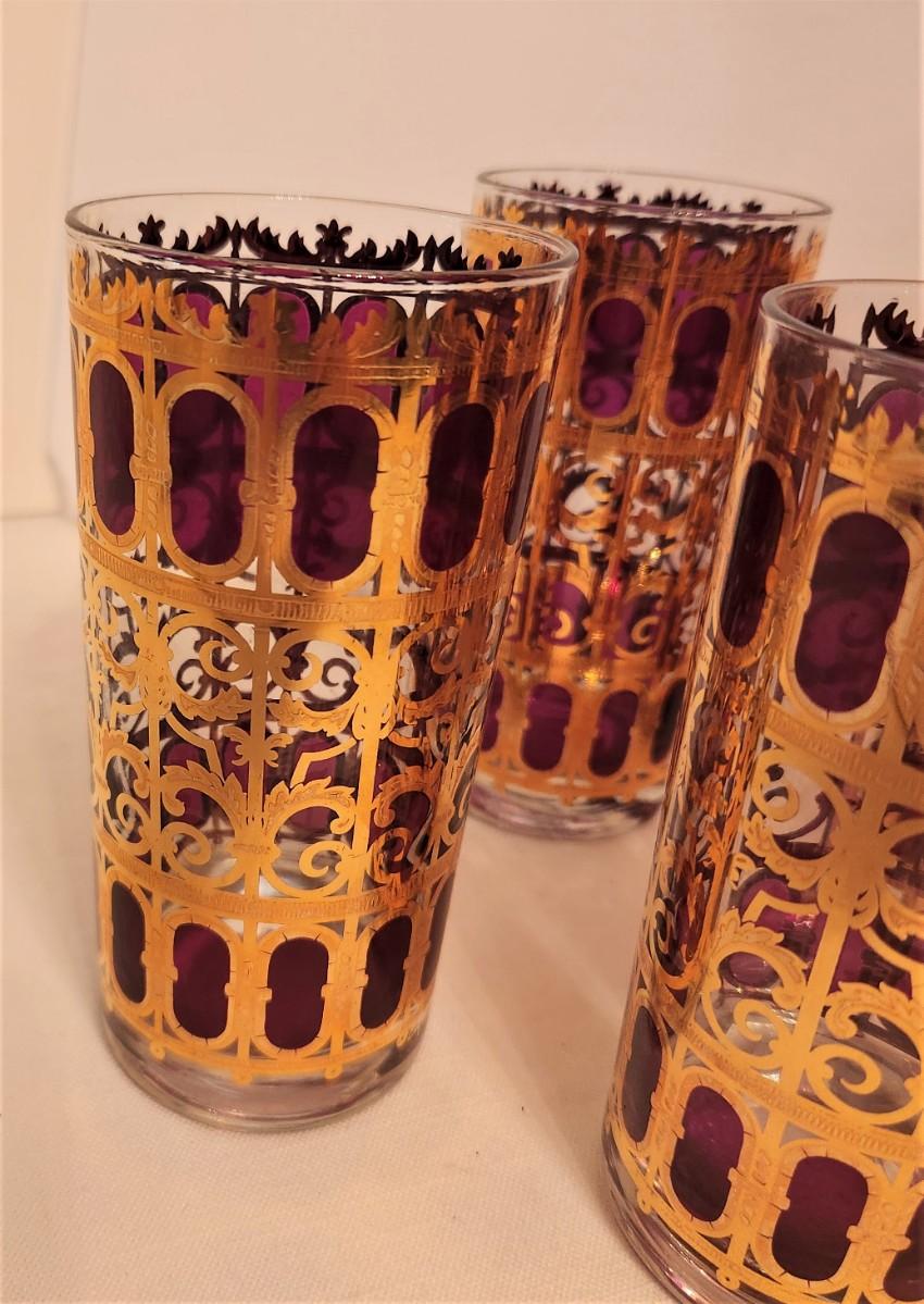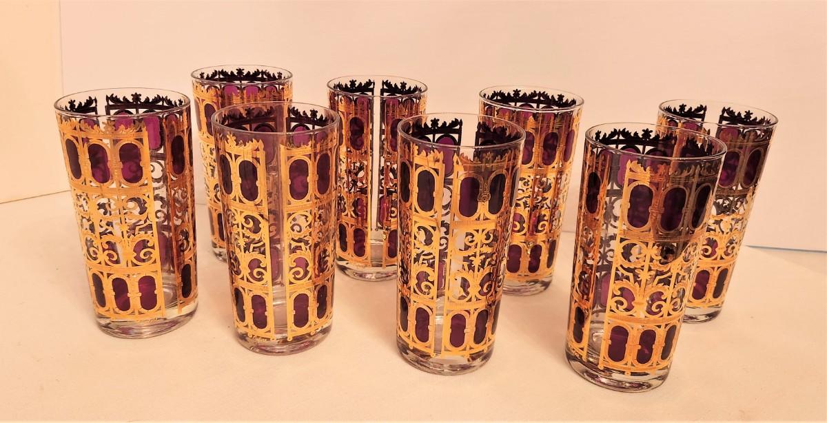 Lot of 8 vintage Culver Collins Glasses in one of their most sought after patterns - Cranberry Scroll. These are in awesome condition. Each is 5.5" tall. A fabulous addition to any bar cart. Glasses like these were featured in the Al Pacino movie "Scarface." We have other glasses in this pattern later in the sale.