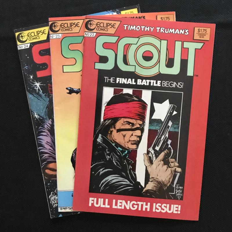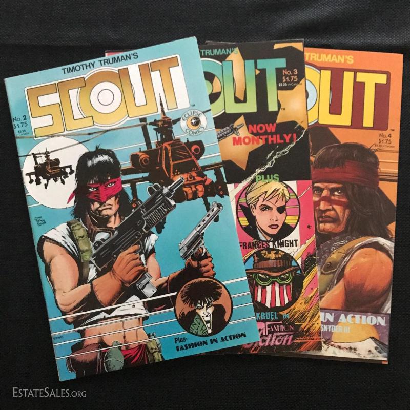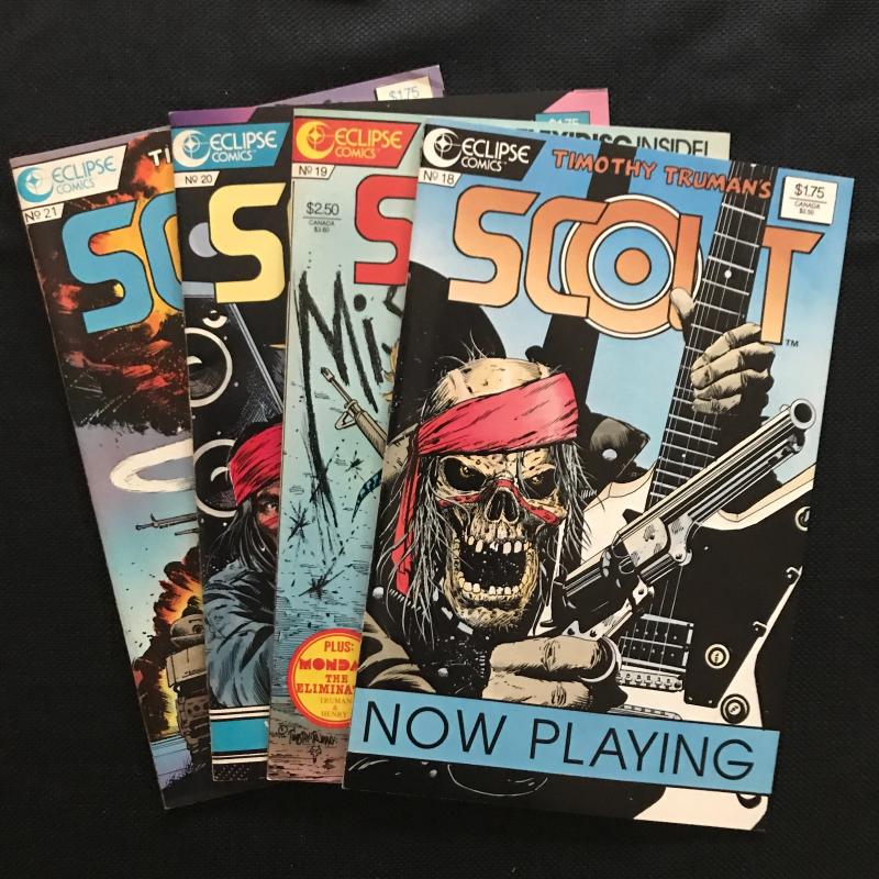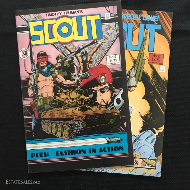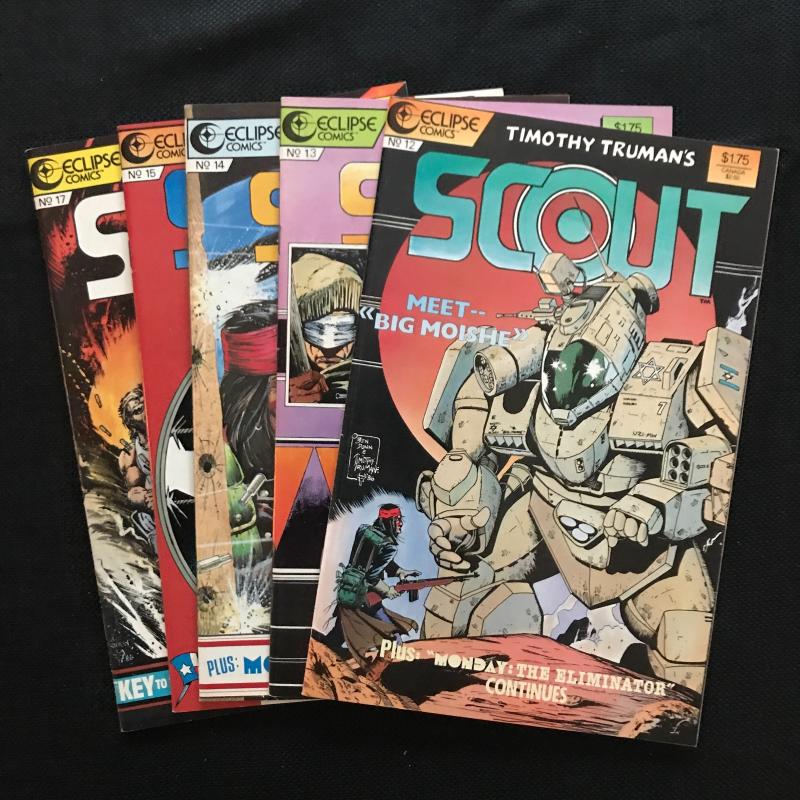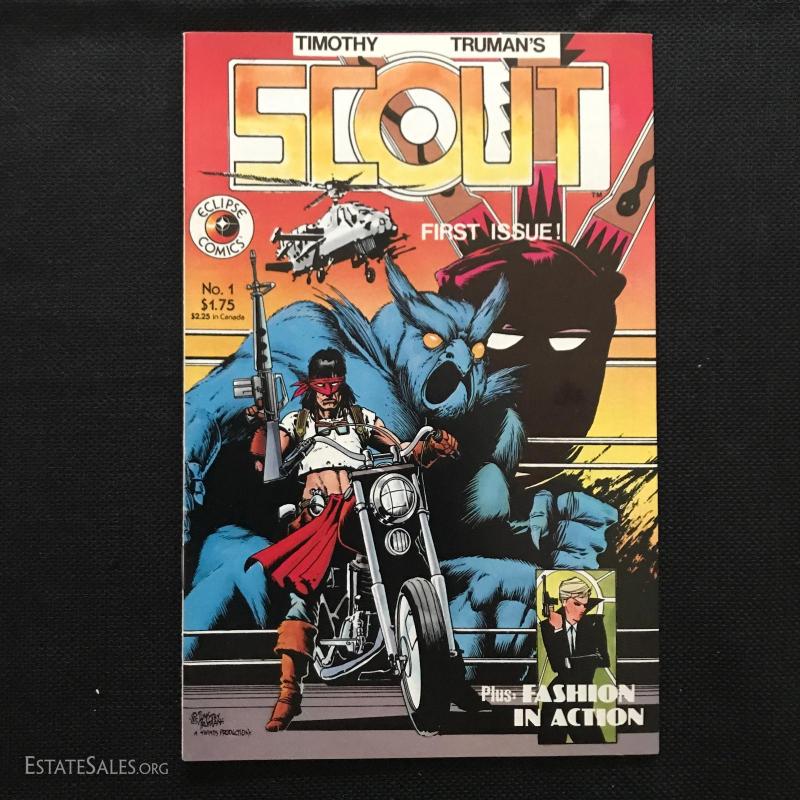 47 issues in this lot. Includes 26 issues of "Scout" by Eclipse Comics (includes first issue), 6 Issues of "Slash Maraud" by DC Comics, 3 Issues of "Swords of The Swashbucklers" by Epic Comics, 6 Issues of "Stig’s Inferno" by Eclipse Comics, 3 Issues of "Strange Days" by Eclipse Comics, and more. See photos for details. Fits in ONE Priority box or local pick up in Asheville, NC.