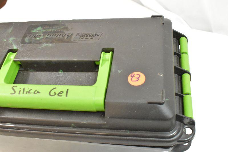 Ammo box with silica gel packs and super absorbent gel crystals to stop rust and corrosion.