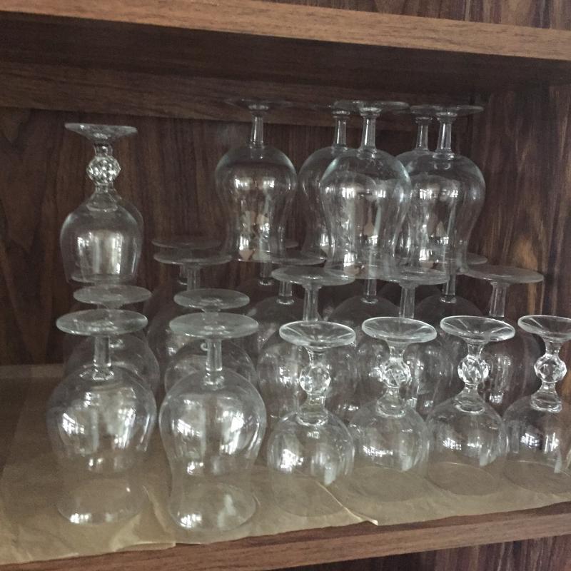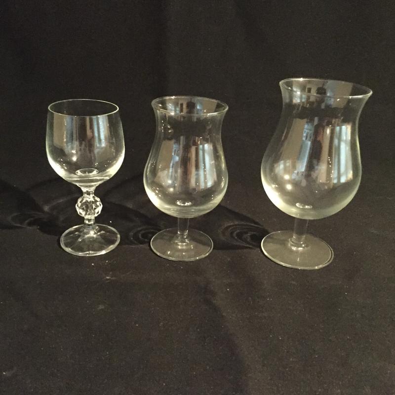 Stock up the bar with this fine collection of stemware in three different sizes. Six Small, Eleven Medium and Eleven Large. Largest Glass Measures 7” Tall. Local Pickup Only