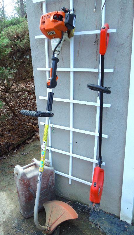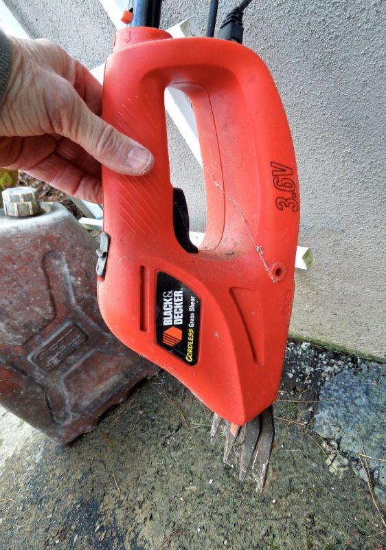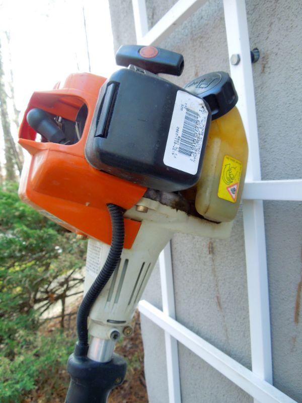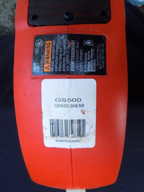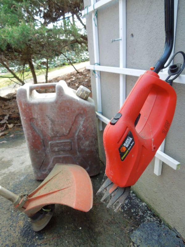 Lot includes two phenomenal yard tools and a large plastic gas jug with very little gas. Stihl yard trimmer or weed whacker model FS 75 in good working condition. Stihl trimmer has an Autocut 10-11 head. It comes with no string and has not been cleaned. Black and Decker GS 500 cordless grass shear for trimming hedges (no charger, so not tested). Manual included for Stihl trimmer.