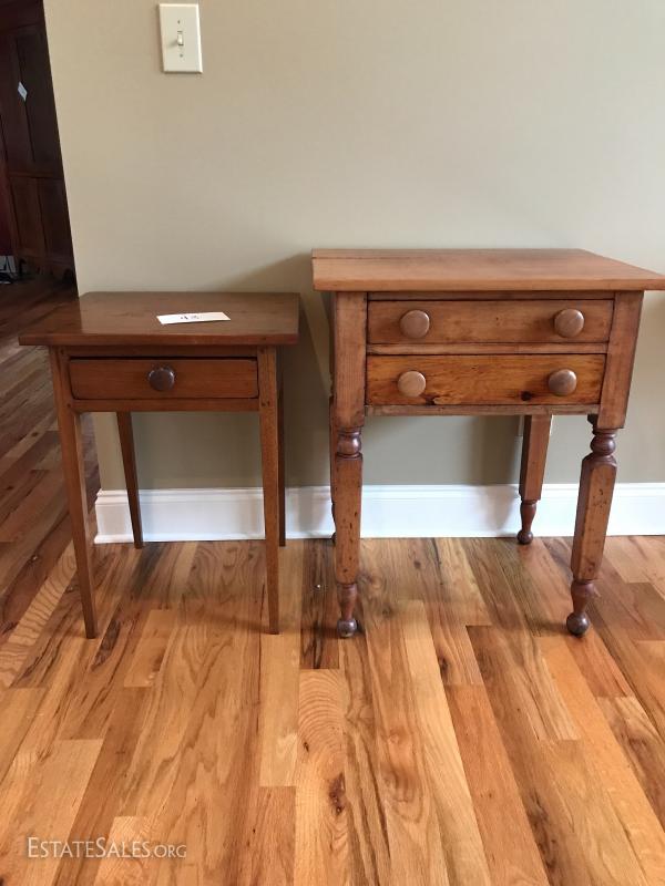 Two antque side tables in perfect condition. Compliment each other, so could easily be used together or separate. Perfect for living room, bedroom or bathroom!