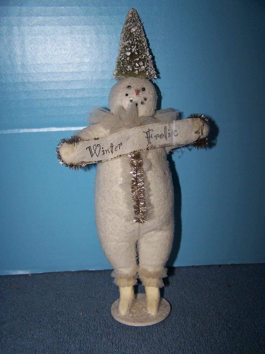 THIS IS A WONDERFUL COLLECTABLE BETHANY LOWE SNOWMAN!!! 10 1/2'' TALL.. BANNER HAS BEEN TAPED, OTHERWISE, LIGHT WEAR..
