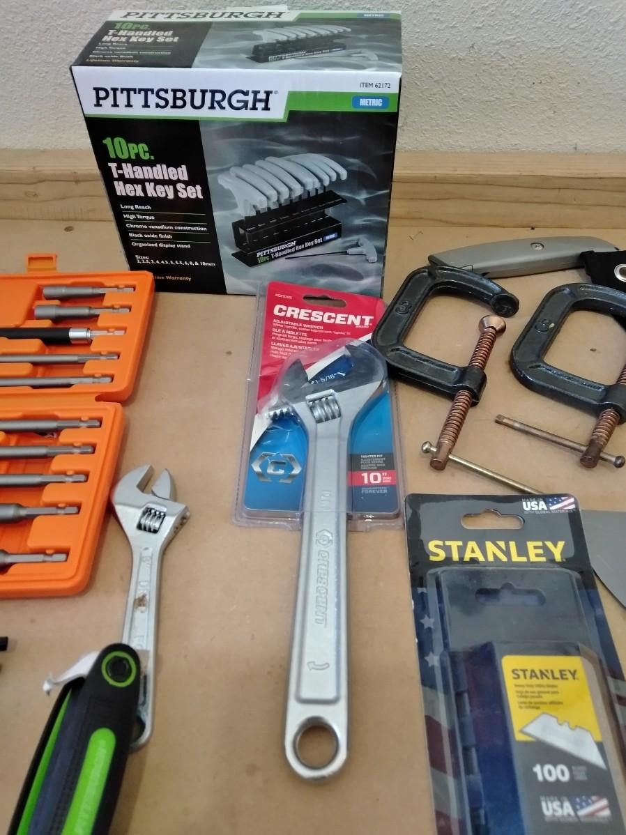NEW 10 PIECE HEX KEY SET, CRAFTSMAN WRENCHES, CLAMPS AND MORE
