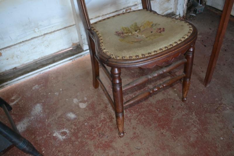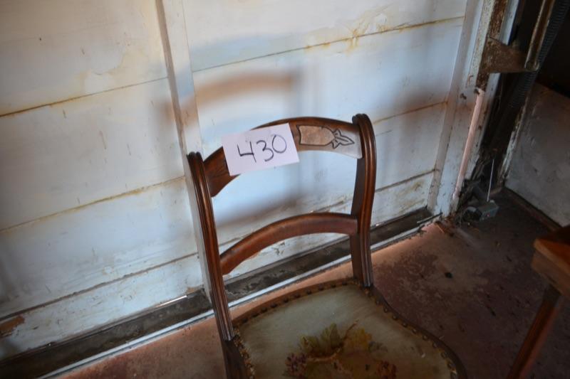 LOT 430. ANTIQUE WOOD CHAIR NEEDS REPAIR