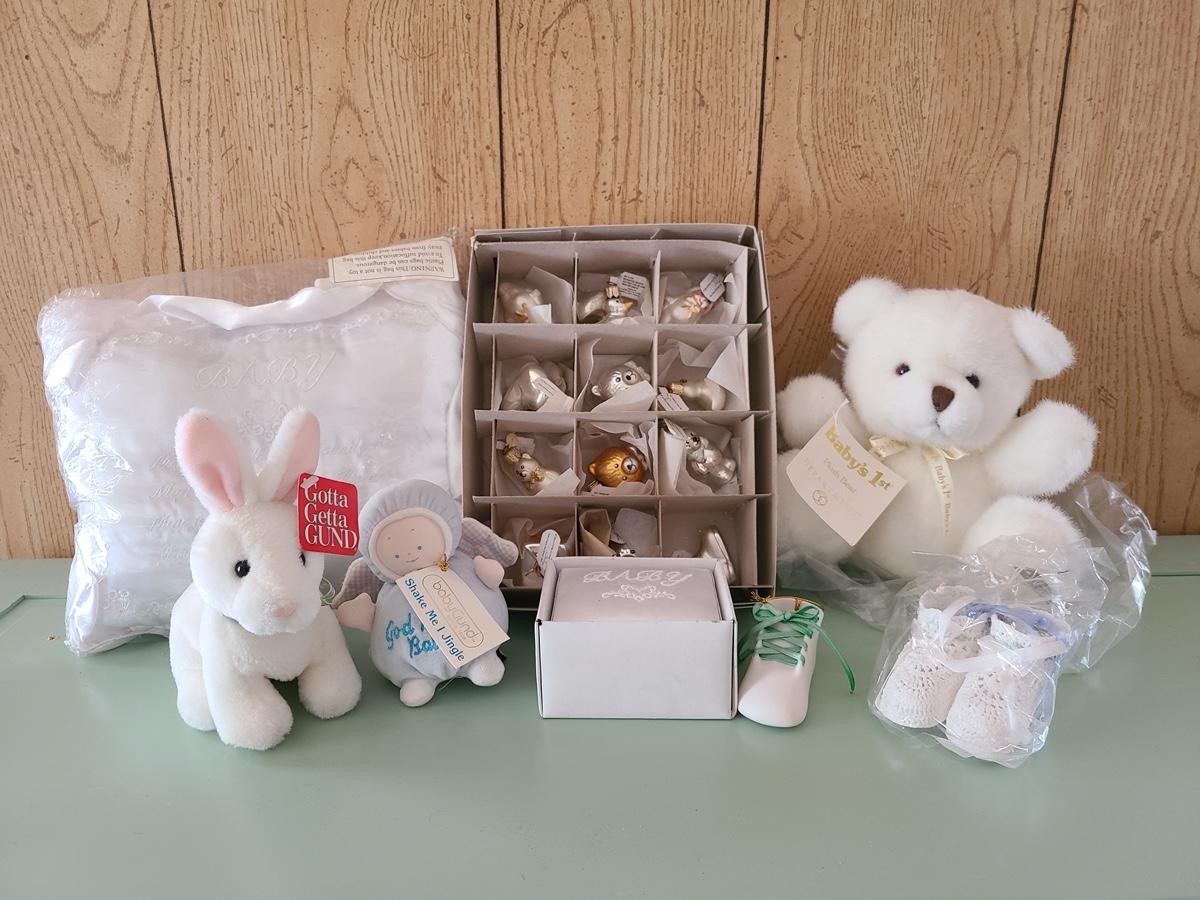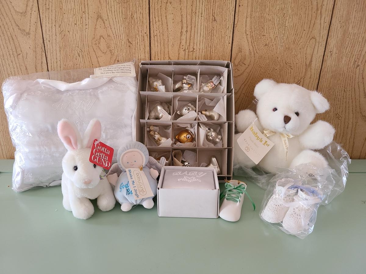 Lot 430: New Baby Gifts: First Teddy, Keepsake Pillow, Ornaments and More