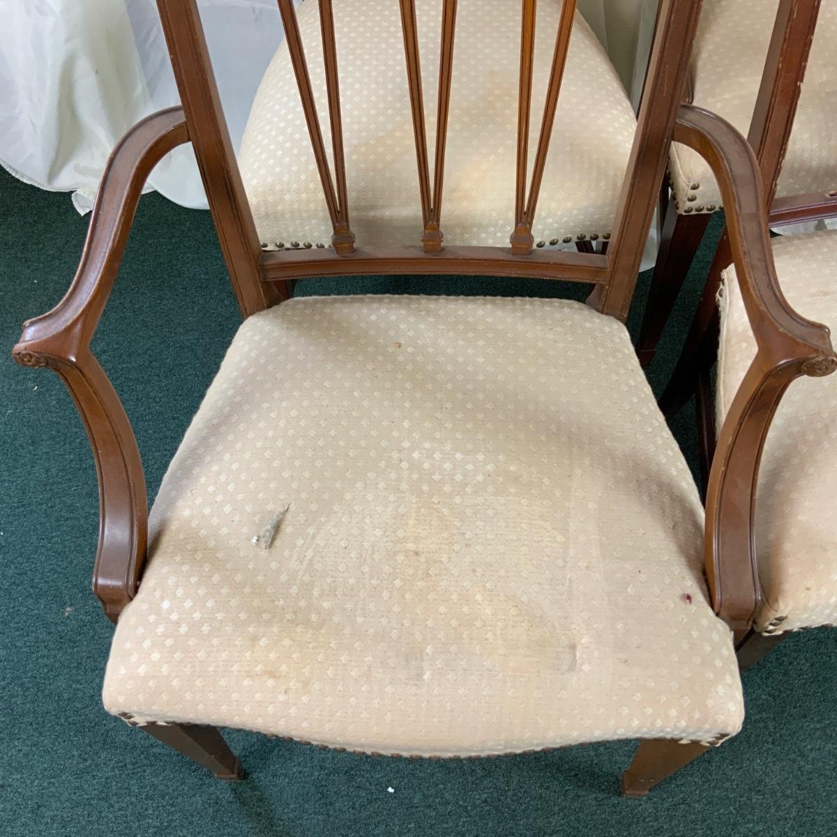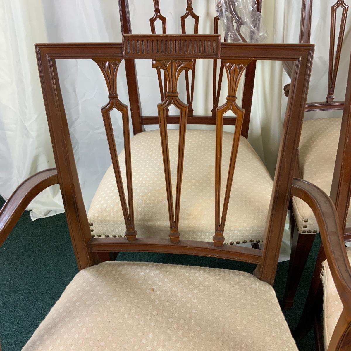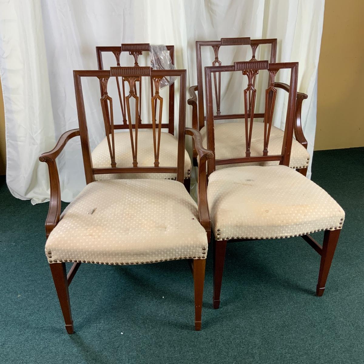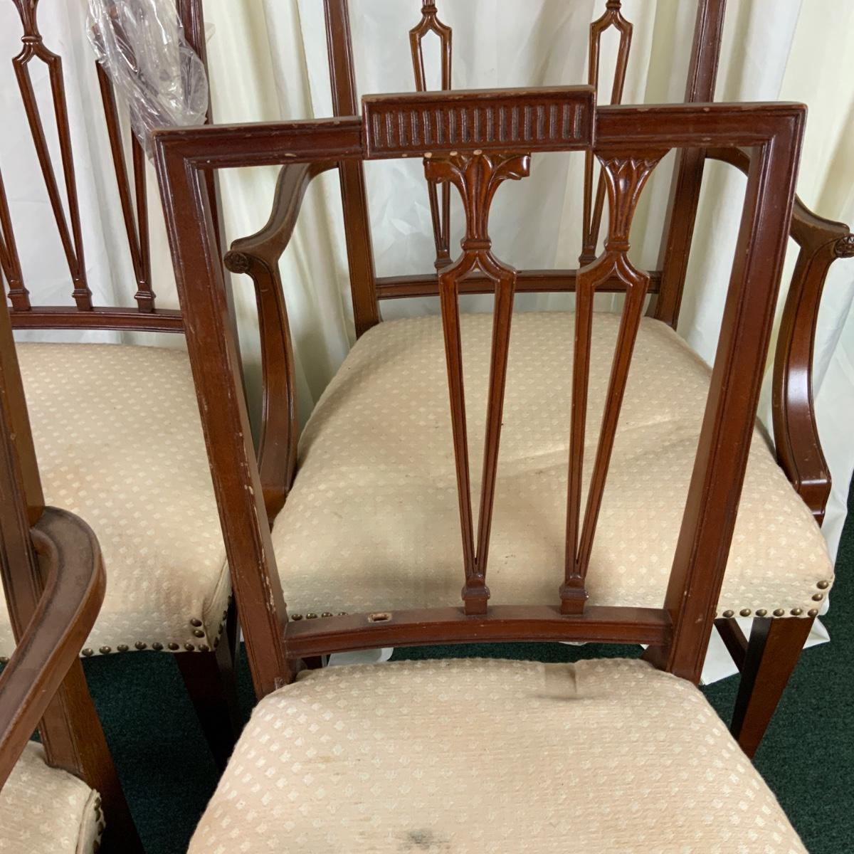 Set of 4 Dining Chairs. Two with arms, two armless. Just need some cleaning. //::\\ Please see photos for details and condition. No attempt has been made to hide any imperfections. All items listed in this auction are warehouse items, and need to be cleaned. A majority of the items need restoration as well. All items are sold AS IS and WITHOUT GUARANTEE. If you are uncertain about an item, DO NOT BID. Due to the nature of this online auction in-person inspection is HIGHLY recommended. All Sales are FINAL. Pick Up Times are FIRM. Please confirm with your own schedule that you can pick up in the scheduled times listed in the Terms and Conditions. Any questions please message the auctioneer. DO NOT Contact The Harp Gallery.