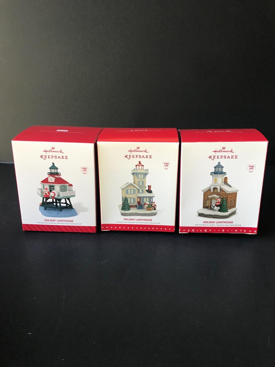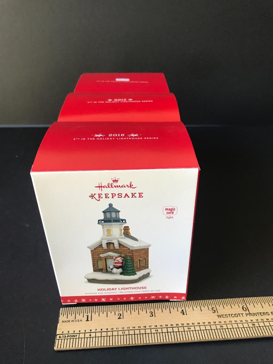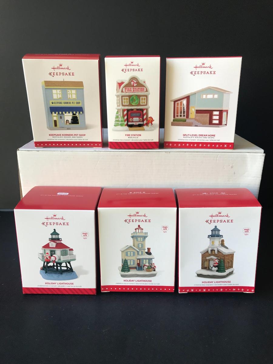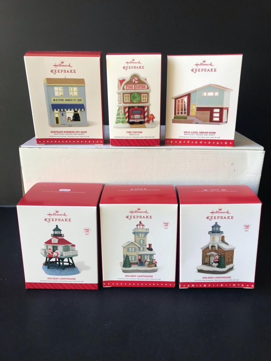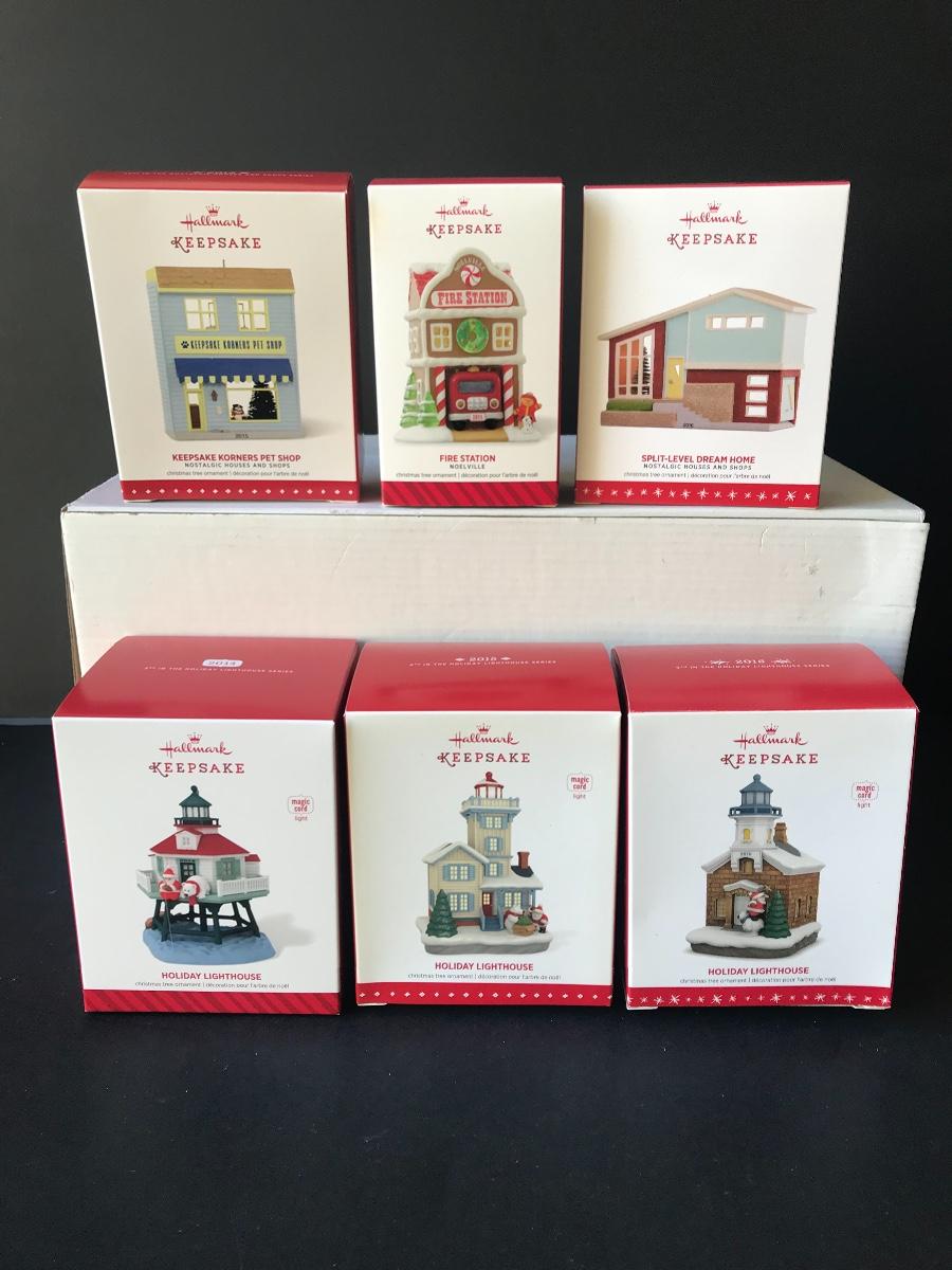 Christmas Ornaments - Hallmark Keepsake Holiday Houses. All Holiday items in this auction are as-seen. The client collected a lot of holiday pieces and some are new in box, some were displayed once and come with original box, and some have been displayed and come with no box. They are all pre-owned in some fashion and have been stored in an attic or on shelf in library. Please see all pictures. The pictures show condition, measurements if taken, and what is included in the lot. Due to the large amount that we photograph and the time frame, we are not always able to take measurements. All items unless noted, are pre-owned and have been used. Thank you