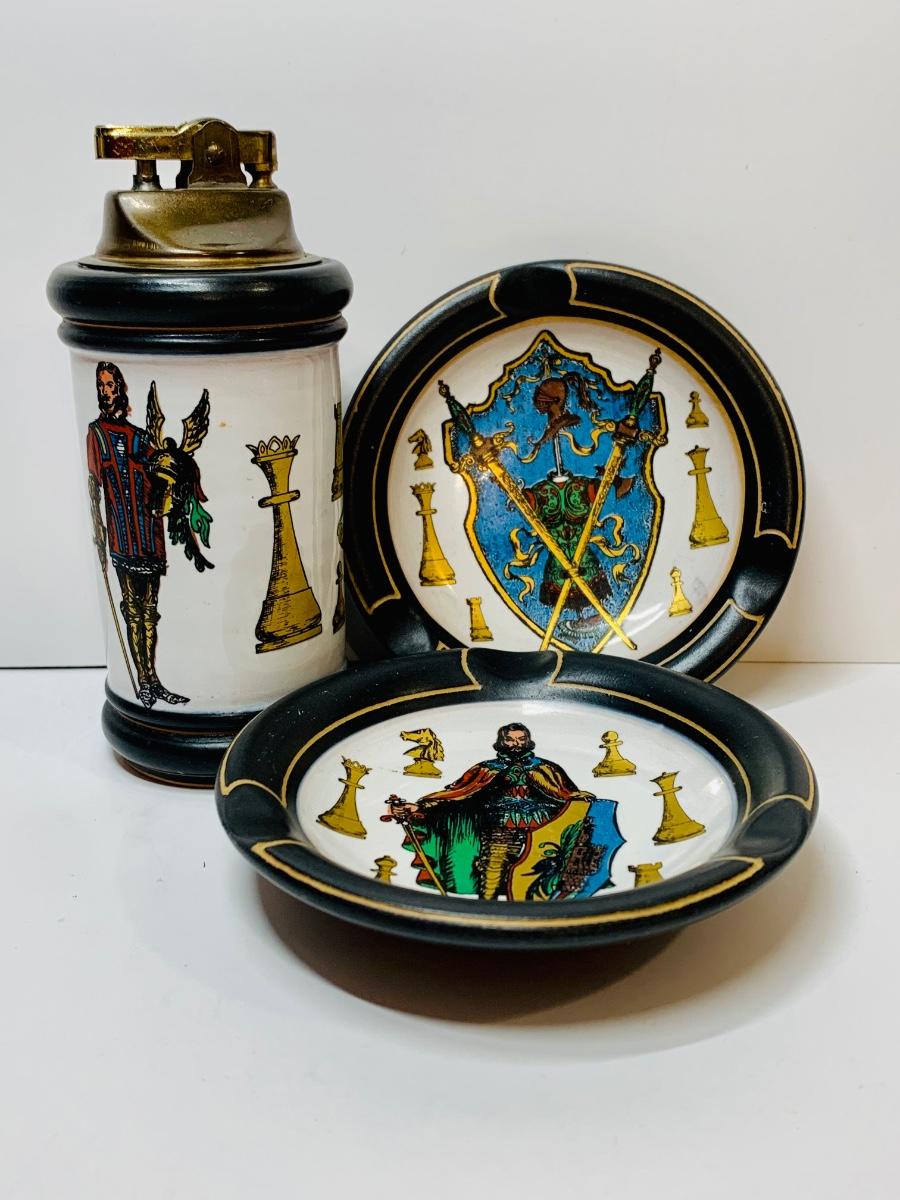 Beautiful set of ashtrays and table lighter Handmade, Florentine Italy