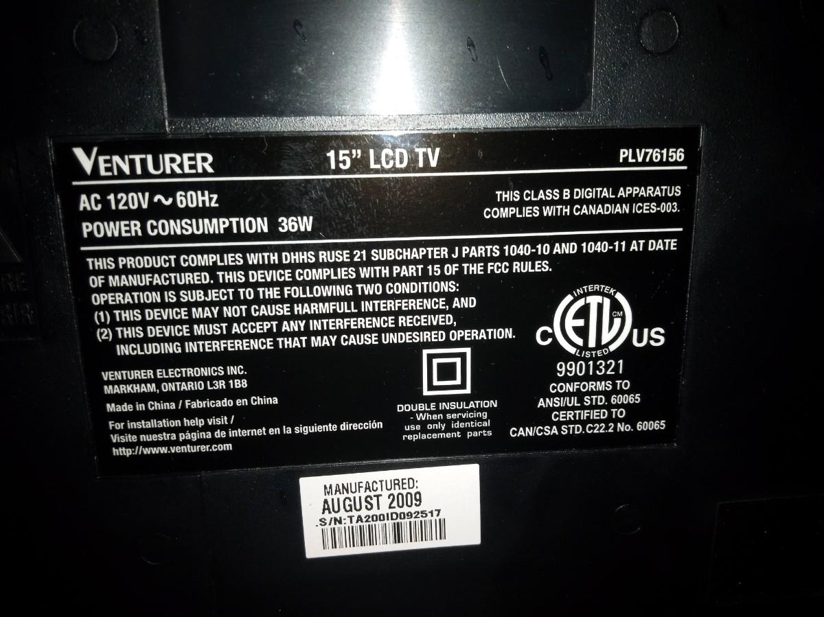 LOT 431 VENTURER 15' LCD TV WITH REMOTE (HD)
